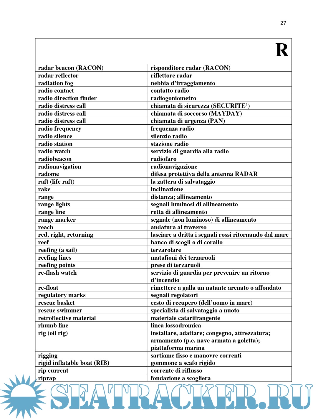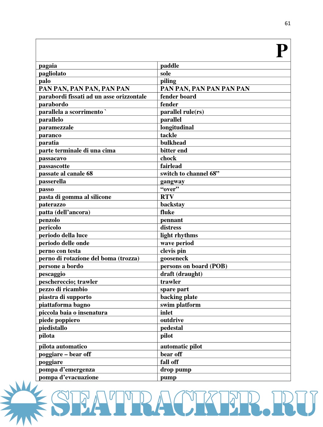 Year: 2012 Language: English, Italian Author: United States Coast Guard Genre: Glossary Publisher: United States Coast Guard Format: PDF Quality: eBook Pages count: 74 Description: A concise English-Italian dictionary of marine terminology designed for US Coast Guard volunteers.
