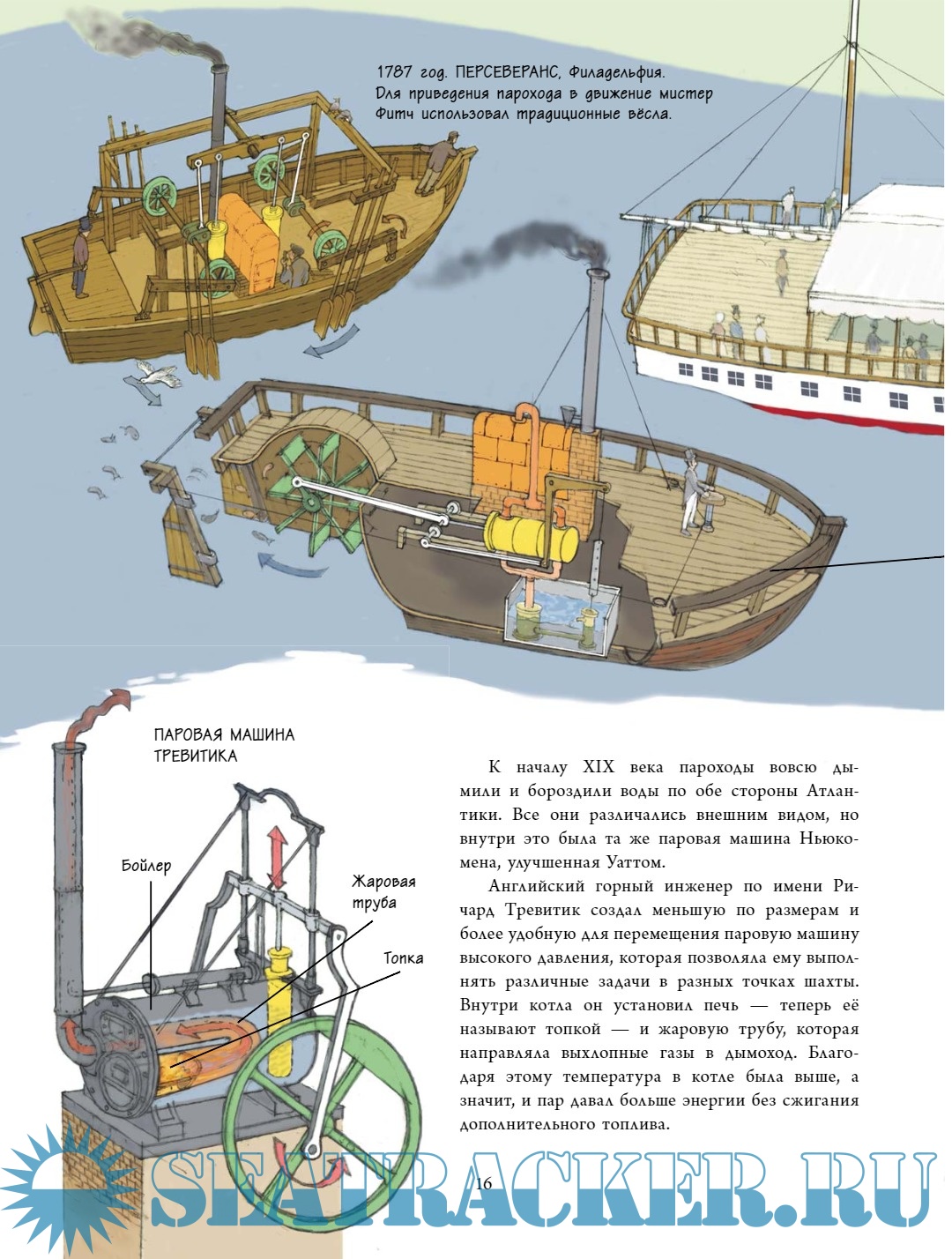 Читатель узнает об изобретении и устройстве паровых двигателей, кораблей, углубится в историю кораблестроения и познакомится с известнейшими архитекторами. Великолепные детальные иллюстрации, добрый юмор, понятные описания простых и сложнейших конструкций и деталей кораблей делают эту книгу неповторимым подарком всем любителям техники, кораблей и просто хороших историй.