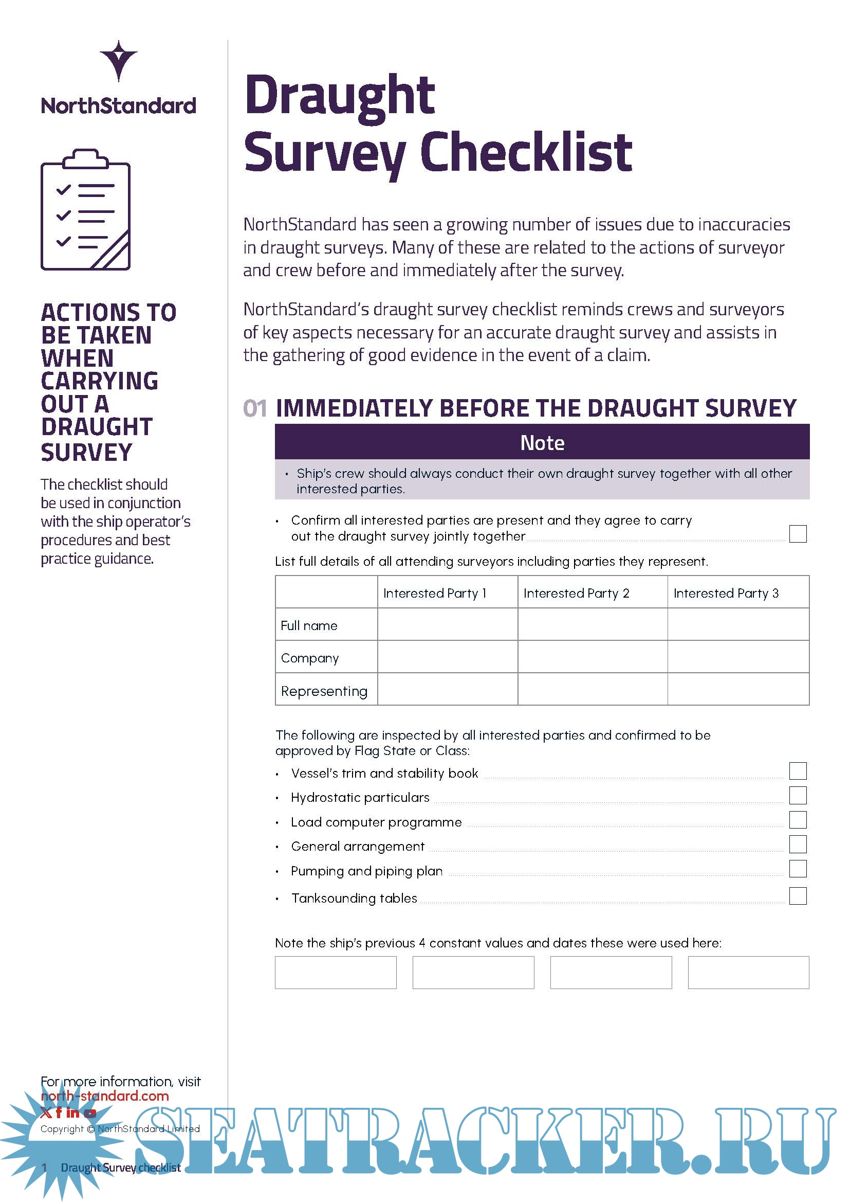 The checklist should be used in conjunction with the ship operator’s procedures and best practice guidance.
