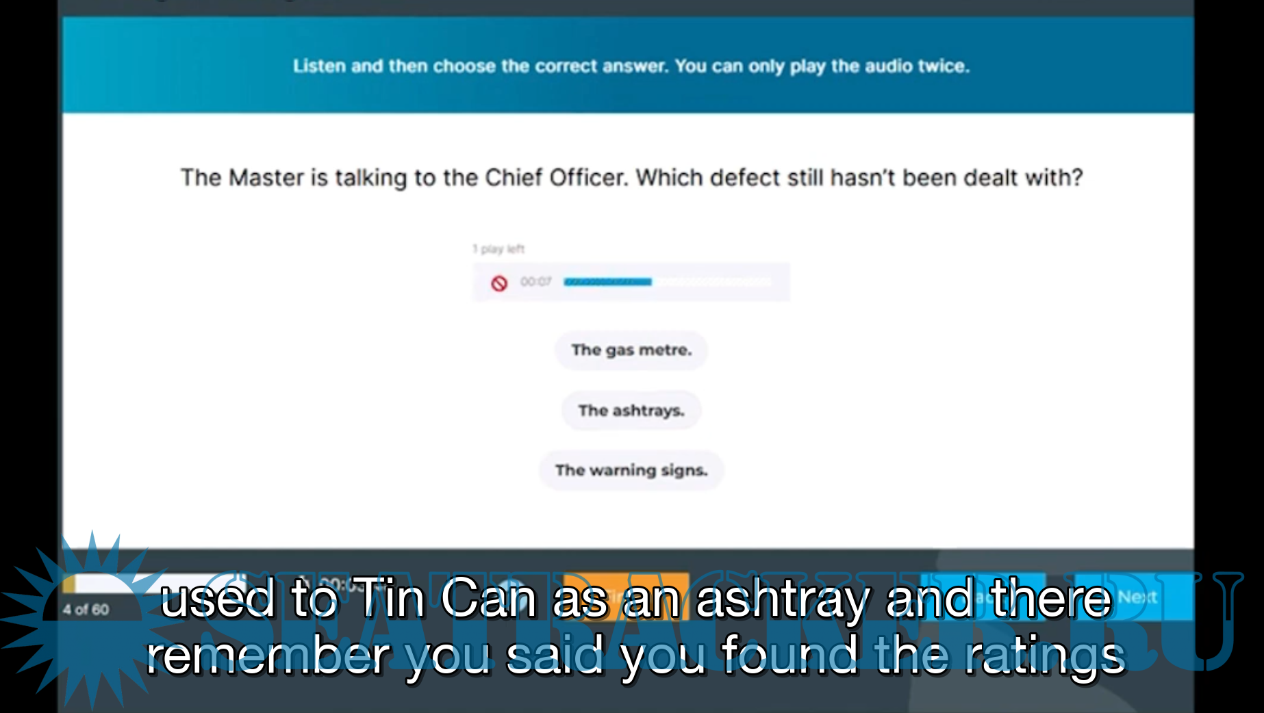 Description: Marlins practice video for seafarer for marlins test preparation, every part of questionnaire is random & different, this video for reference only, not for commercial use.