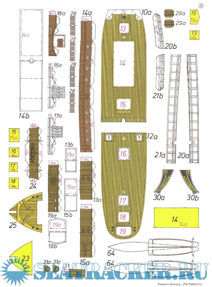 Год выпуска: 2011 Язык: Английский, Испанский, Итальянский, Немецкий, Французский Автор: нет данных Жанр: Кто действительно занимается судо- (и не только) моделизмом :) Издательство: Schreiber-Bogen Формат: JPEG Качество: Изначально компьютерное (eBook) Количество страниц: 9 Описание: 9 листов цветных выкроек и инструкций для изготовления бумажной модели барка "Theone" 1863 год в масштабе 1:200