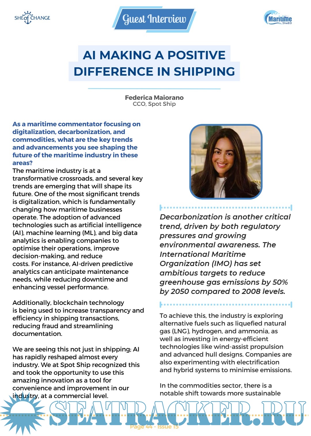 The cover page portrays Caitlin Hardy, the MD and founder of Ness Sea, a consulting business that connects the technology and maritime industries. In the interview with Caitlin she talks about her incredible growth and journey within the maritime industry.