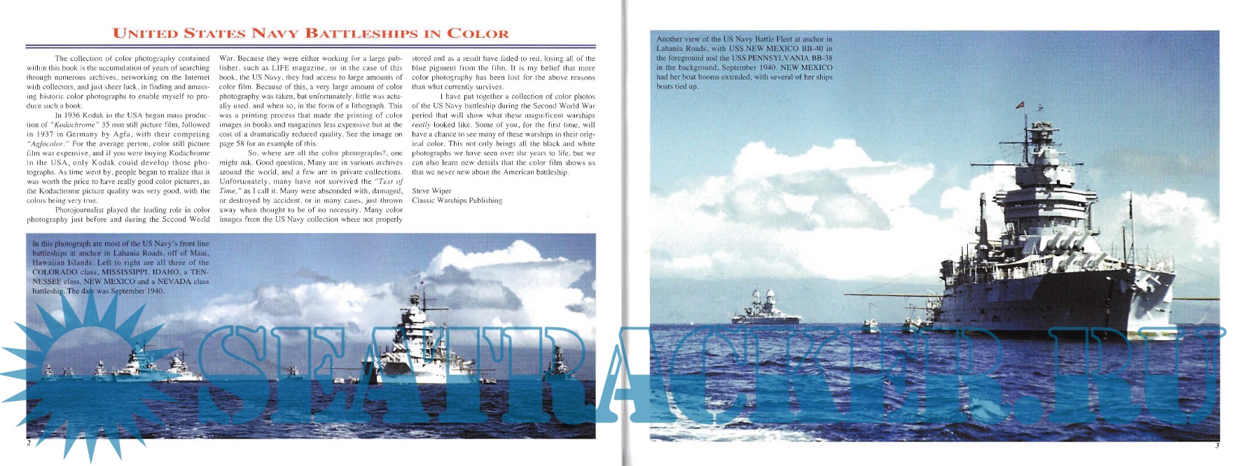 Year: 2010 Language: English Author: нет данных Genre: Historical Publisher: Classic Warships Publishing Edition: Warship Pictorial No. 34 Format: PDF Quality: Scanned pages Pages count: 76 Description: OUT OF PRINT ! When these are gone - that's it ! No More ! . Warship Pictorial 34 - USN Battleships in Color by Steve Wiper Publisher : Classic Warships Available : July 2010 ISBN : 978-0-9823583-5-1 Never before has any book been published containing photographs of all of the US Navy battleships that fought during the Second World War in original period color photographs. It took many years of collecting these historic color images to complete this book. Most of the photos have never been previously published and those that have, not to the level of quality provided in this book. For the first time, one will have a view of what these magnificent warships looked like in real color. All the photos in this book are historic photos, none are from modern times. WP34 contains 100 color photos within the 72 pages.