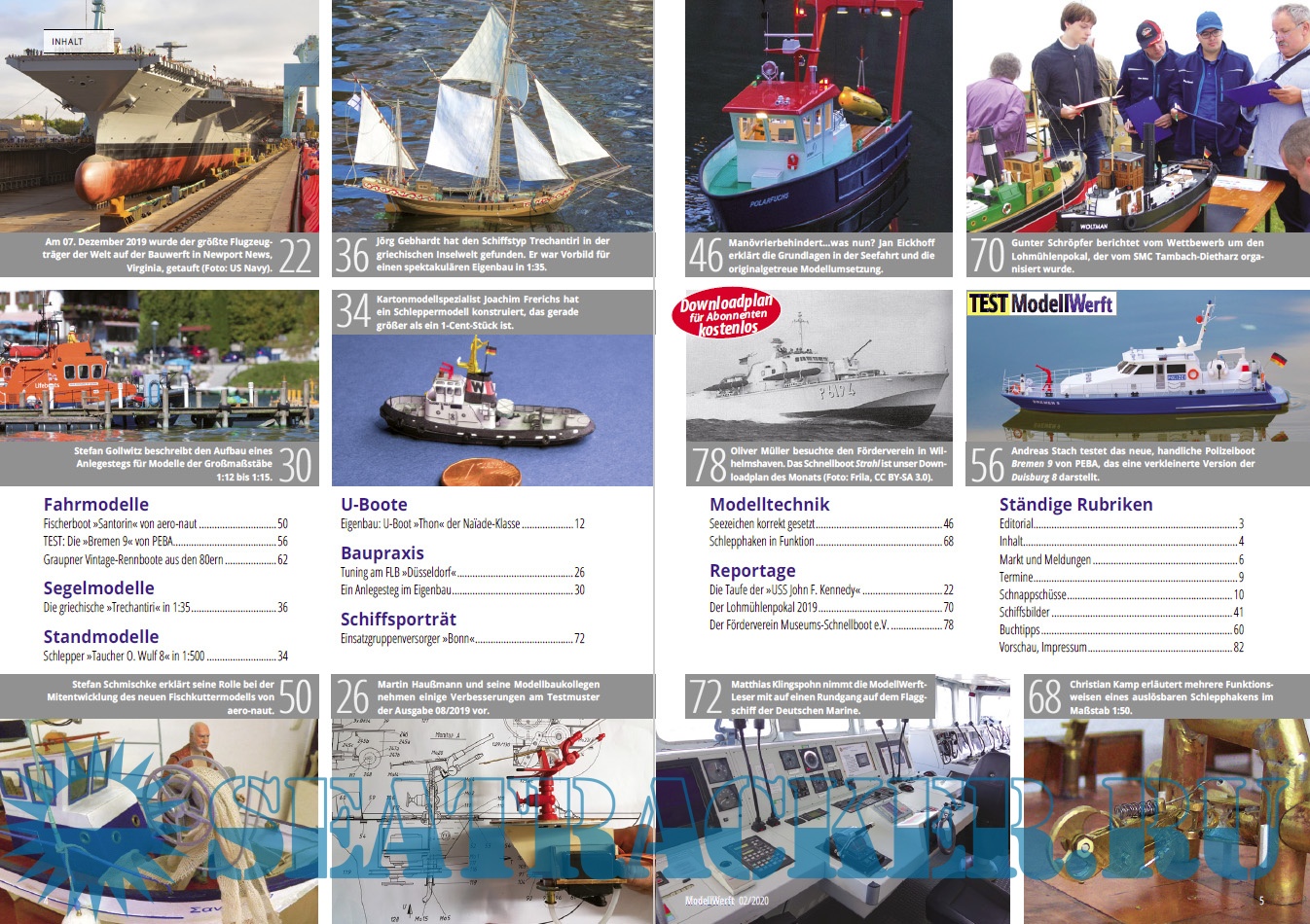 Year: 2020 Language: German Author: Eric Schafenrort (Redaktor) Genre: Periodical publication Edition: 2020-02 Format: PDF Quality: eBook Pages count: 84 Description: Das führende Fachmagazin für Schiffsmodellbauer. Egal ob Stand- oder Fahrmodell, ob kleines Segelboot oder gigantisches Kreuzfahrtschiff. Die Modellwerft informiert über Neuheiten, hilft mit Bautipps und fasziniert mit besonderen Reportagen.