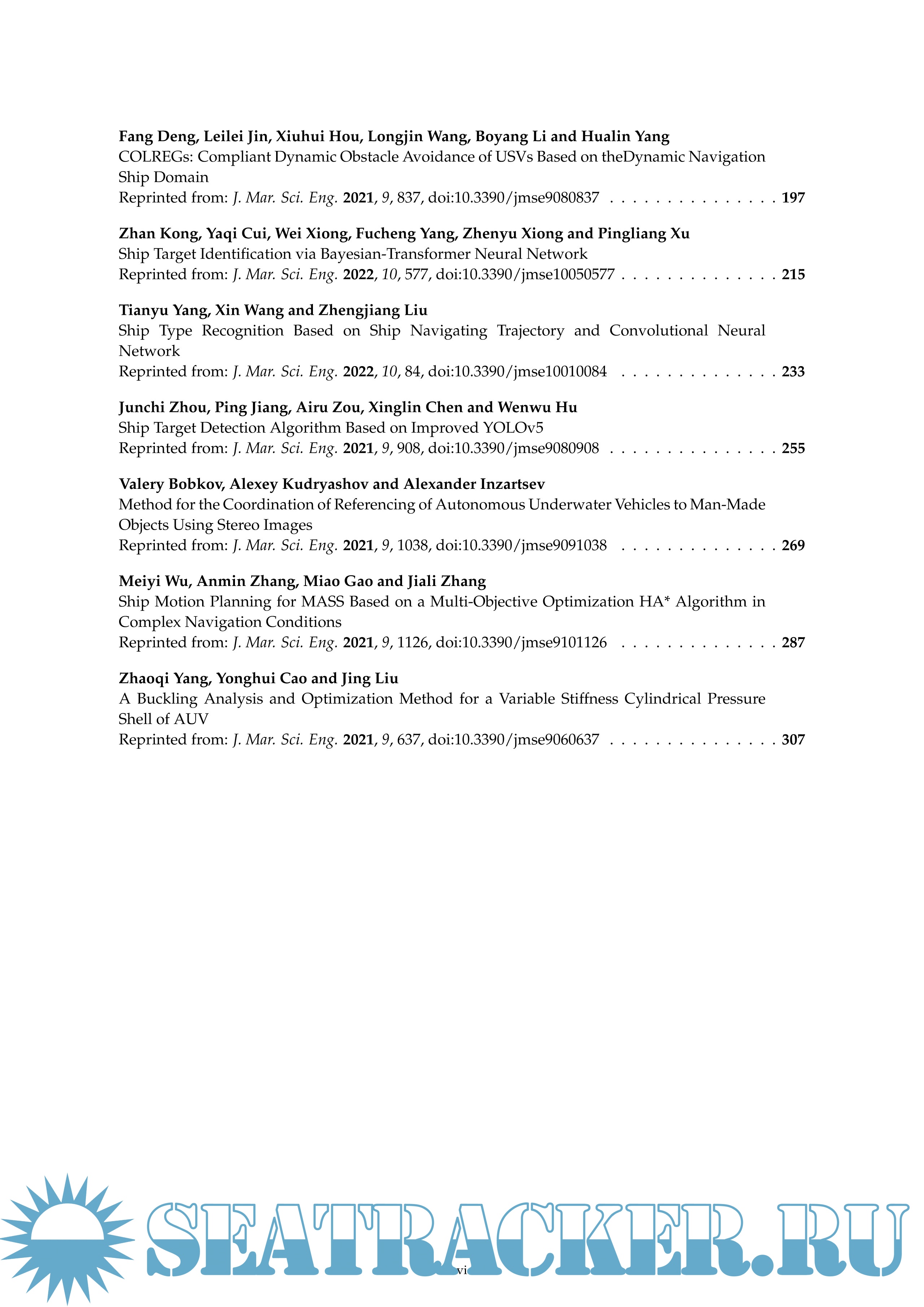 Year: 2022 Language: English Author: Haitong Xu, Lúcia Moreira, Carlos Guedes Soares Publisher: MDPI ISBN: 978-3-0365-6414-2 Format: PDF Quality: eBook Pages count: 334 Description: This reprint is a printed edition of the Special Issue on Maritime Autonomous Vessels that was published in the Journal of Marine Science and Engineering. It contains an editorial and 17 peer-reviewed research studies in the field of Maritime Autonomous Surface Ships (MASS), Unmanned Surface Vessels (USVs), Autonomous Underwater Vehicles (AUVs), and underwater gliders, to name a few. The main goal of this reprint is to address key challenges, thereby promoting research on marine autonomous ships. There are many topics on autonomous vessels involved in this reprint, for instance, automatic control, manoeuvrability, collision avoidance, ship target identification, motion planning, and buckling analysis.