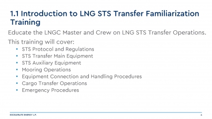 Educate the LNGC Master and Crew on LNG STS Transfer Operations.