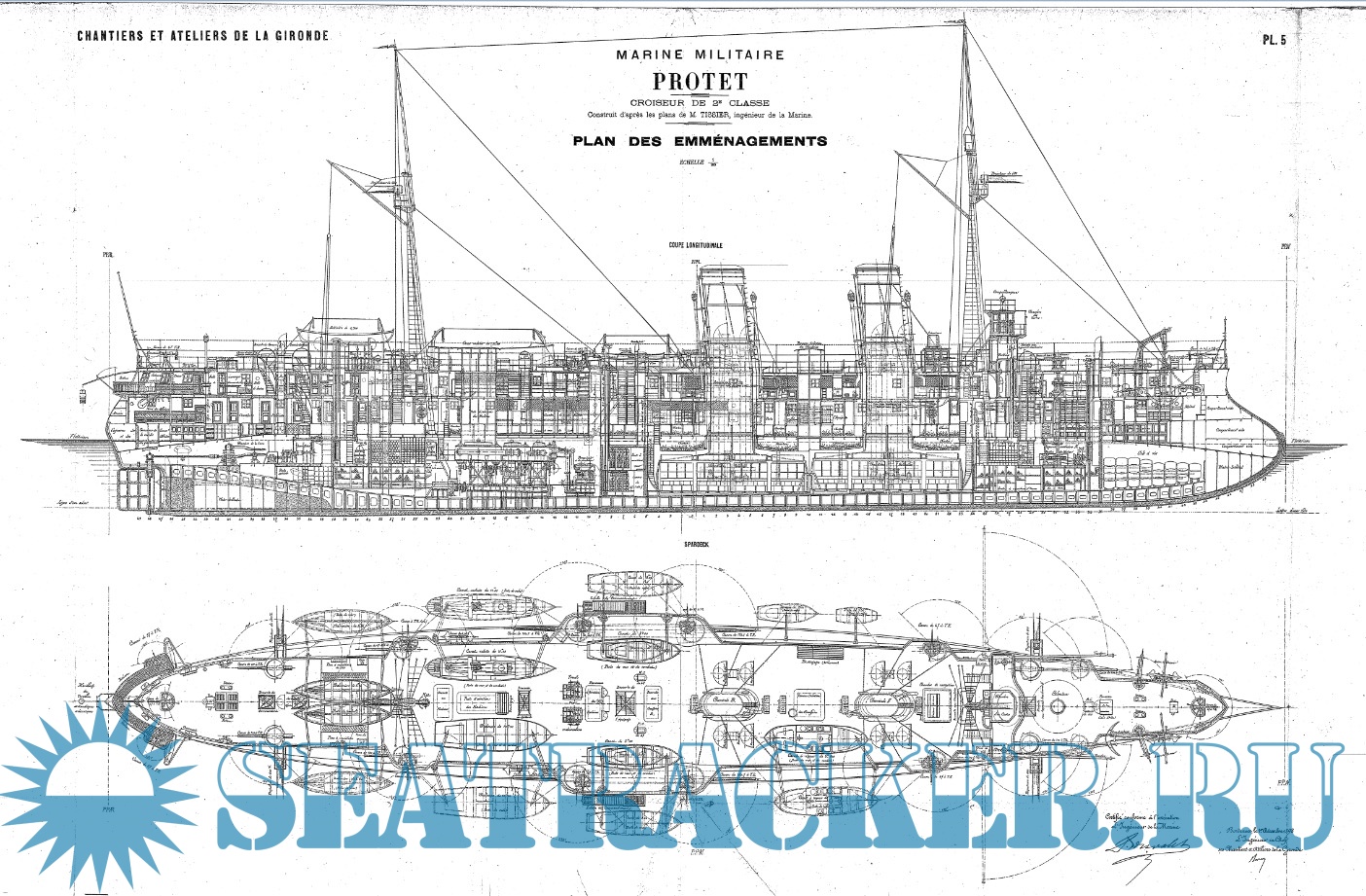 Архивные чертежи французского крейсера 2 ранга PROTET 1898 год