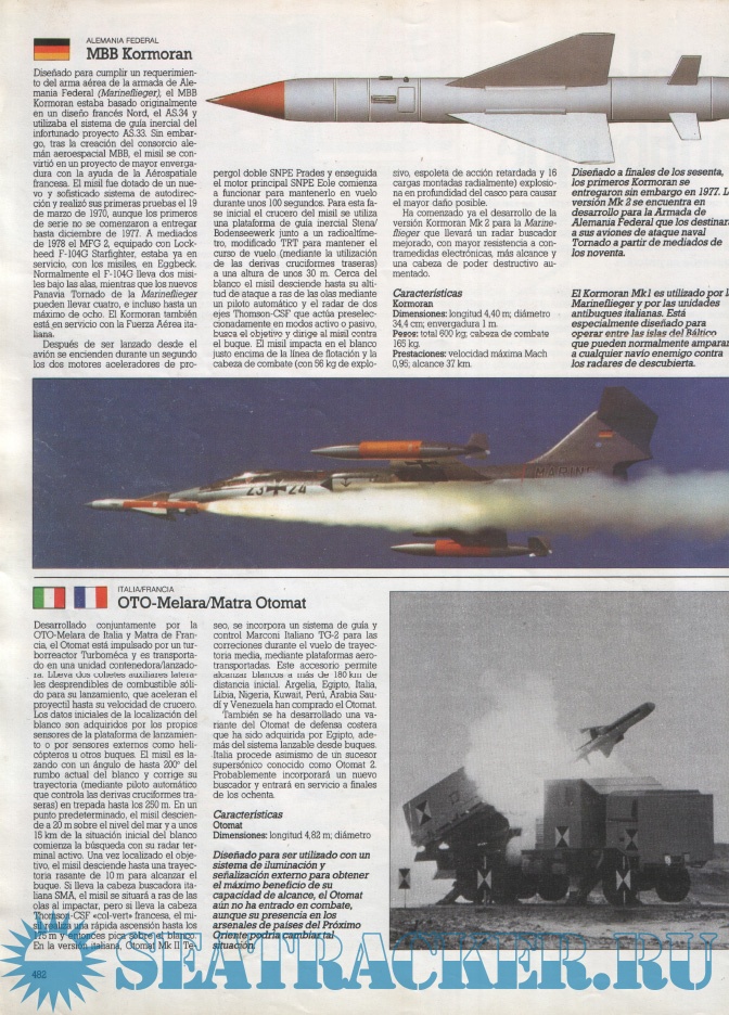 Enciclopedia de las Armas del Siglo XX.El misil antibuque se ha convertido en los ultimos años en el arma que permite a pequeñas naciones disputar la supremacia naval a las superpotencias. Los sucesos de 1982 en el Atlantico Sur han demostrado como la teoria se convertia en practica.
