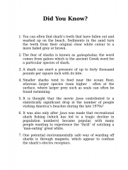 Description: Did you know that most sharks have an excellent sense of hearing? Or that fear of sharks is known as galeophobia? This fantastic quick-read eBook features over one hundred facts split into categories such as shark attacks, conservation, myths, record breakers and many more. So if you want to know how long a whale shark can live for, or what the Aztecs used to ward off sharks, then this is the book for you! Find the information you want, fast.