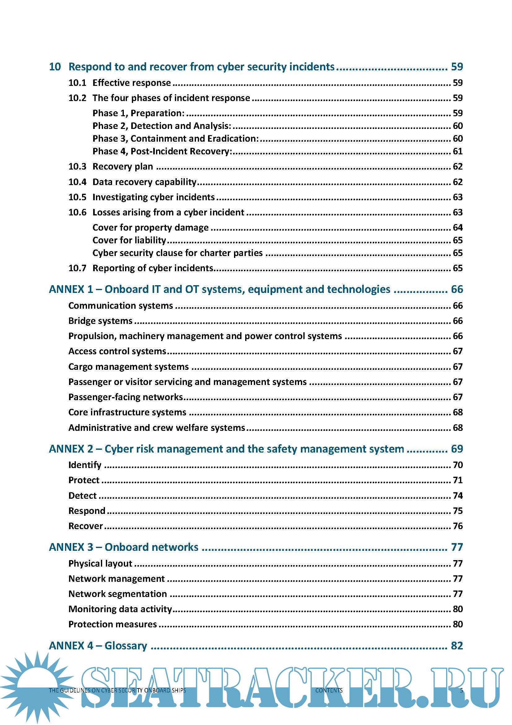 Year: 2024 Language: English Author: BIMCO and Other industry organisations Genre: Guide, Textbook Publisher: BIMCO Edition: Version 5 (November, 14 2024) Format: PDF Quality: eBook Pages count: 85 Description: The purpose of these guidelines is to improve the safety and security of seafarers, the environment, the cargo and the ships. The guidelines aim to assist in the development of a proper cyber risk management strategy in accordance with relevant regulations and best practises on board a ship with a focus on work processes, equipment, training, incident response and recovery management. These guidelines explain why and how cyber risks should be managed in a shipping context. The supporting documentation required to conduct a risk assessment is listed and the risk assessment process is outlined with an explanation of the part played by each component of cyber risk. This publication highlights the importance of evaluating the likelihood and threat in addition to the impact and vulnerabilities when conducting a cyber risk assessment. Finally, this publication offers advice on how to respond to and recover from cyber incidents. The present guidelines are not intended to provide a basis for, and should not be interpreted as, calling for external auditing or vetting the individual company’s and ship’s approach to cyber risk management.