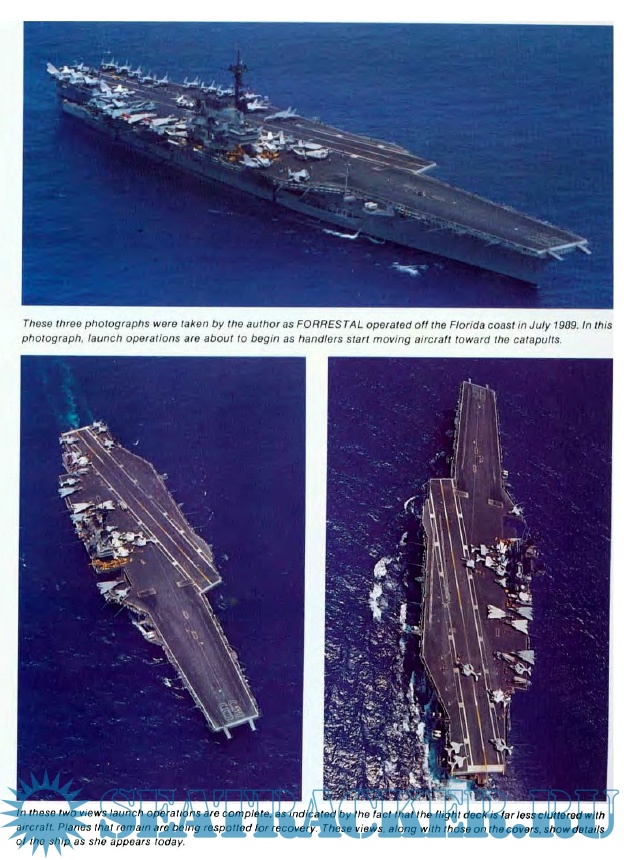 Year: 1990 Language: English Author: Bert Kinzey Genre: Historical Publisher: TAB/Airlife Format: PDF Quality: Scanned pages Pages count: 76 Description: USS Forrestal (CVA-59) (later CV-59, then ACT-59), was a supercarrier named after the first United States Secretary of Defense James Forrestal. Commissioned in 1955, she was the United States' first completed supercarrier, and was the lead ship of her class. The other carriers of her class were USS Saratoga, USS Ranger and USS Independence. She surpassed the World War II Japanese carrier Shinano as the largest carrier yet built, and was the first designed to support jet aircraft.