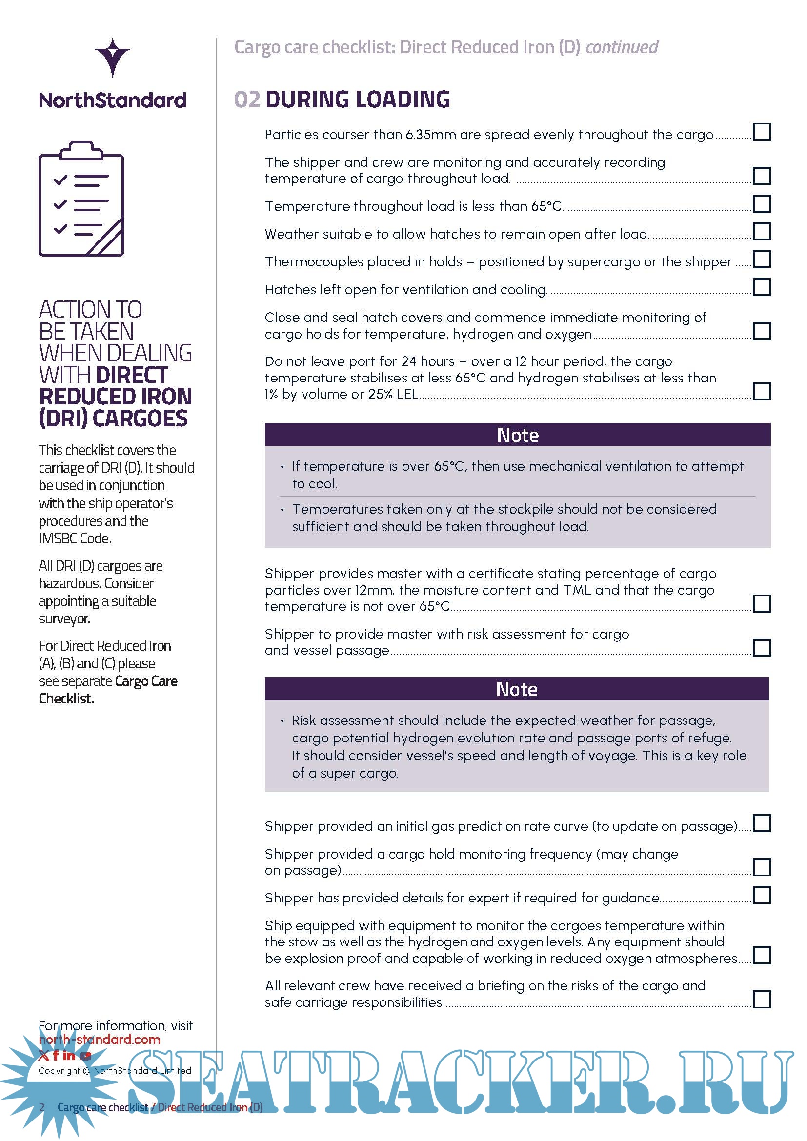 Cargo Care Checklist: Direct Reduced Iron (A), (B) and (C) [updated] - NorthStandard [2024, PDF]