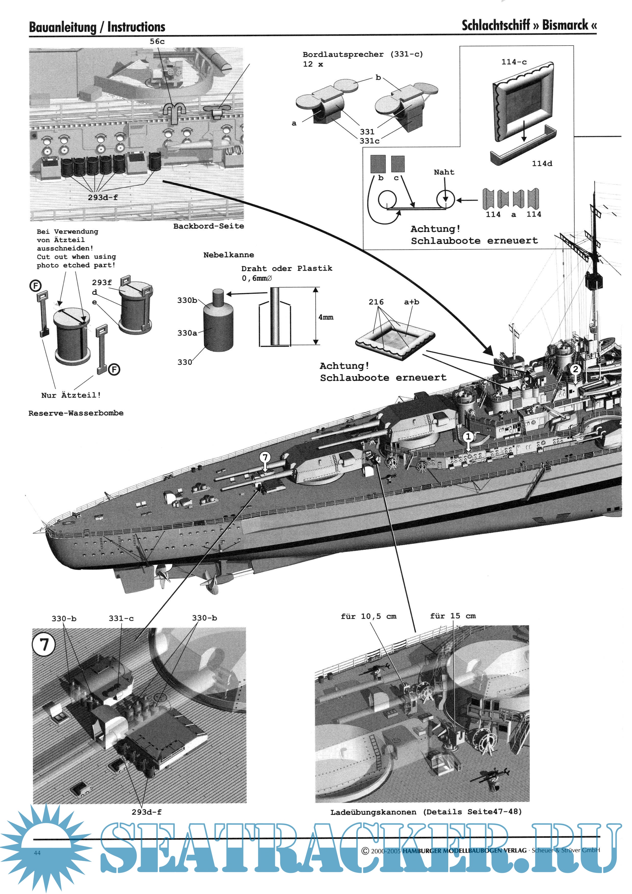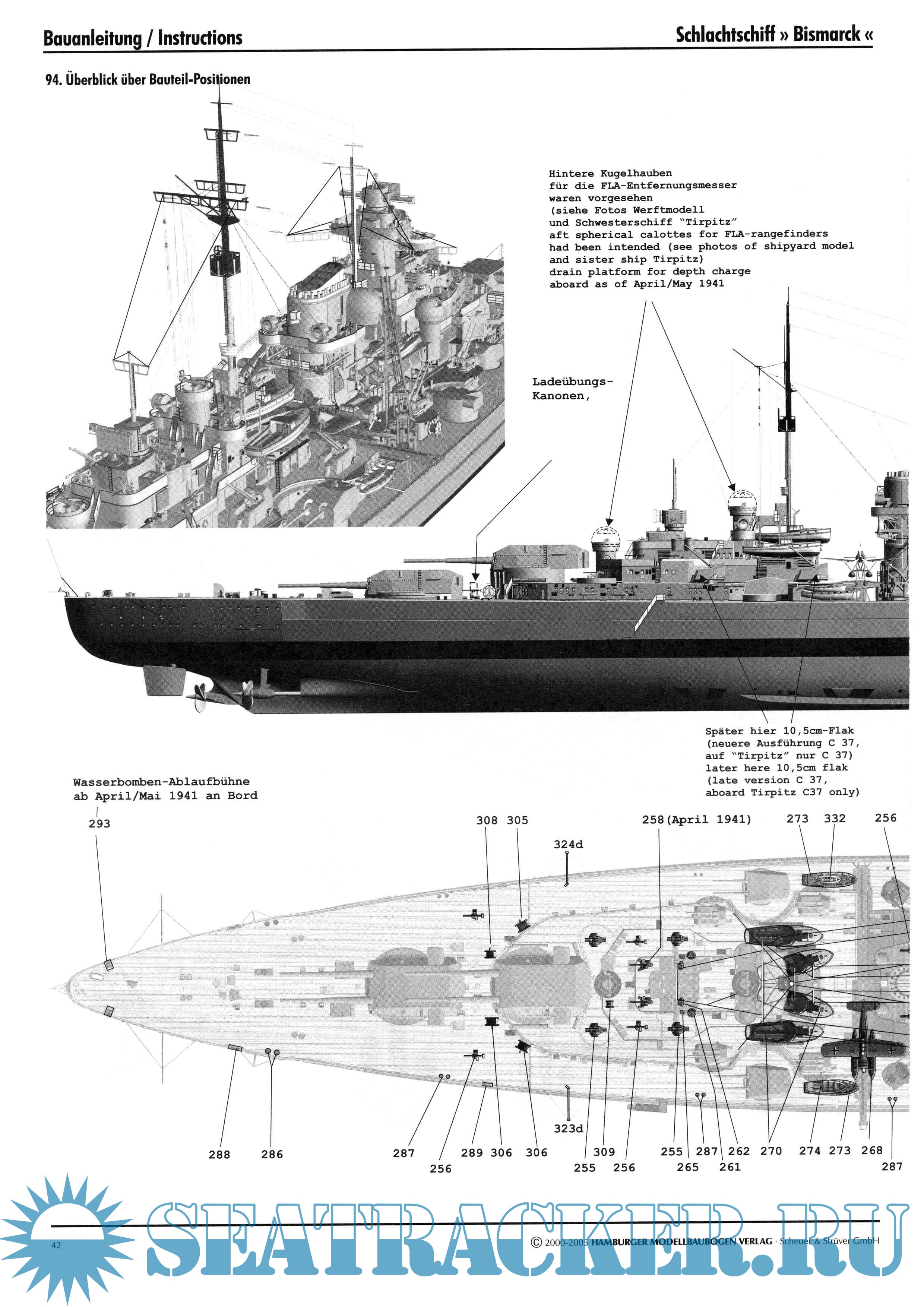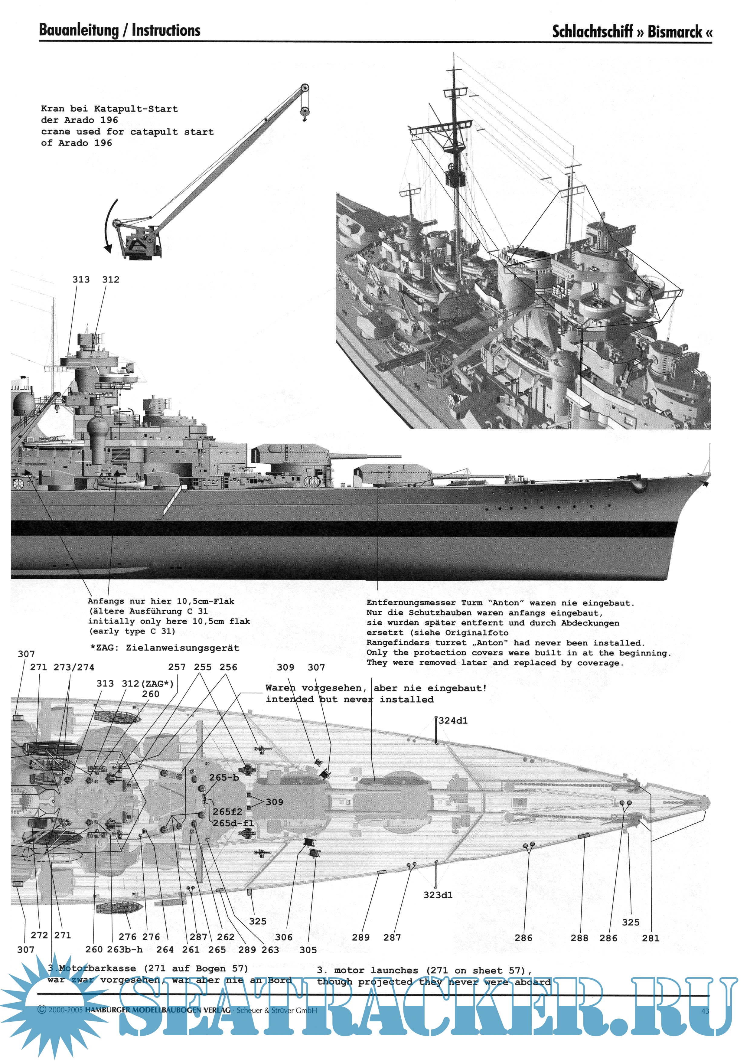 118 листов цветных выкроек и инструкций для изготовления бумажной модели немецкого линкора BISMARCK 1940 год в масштабе 1:250