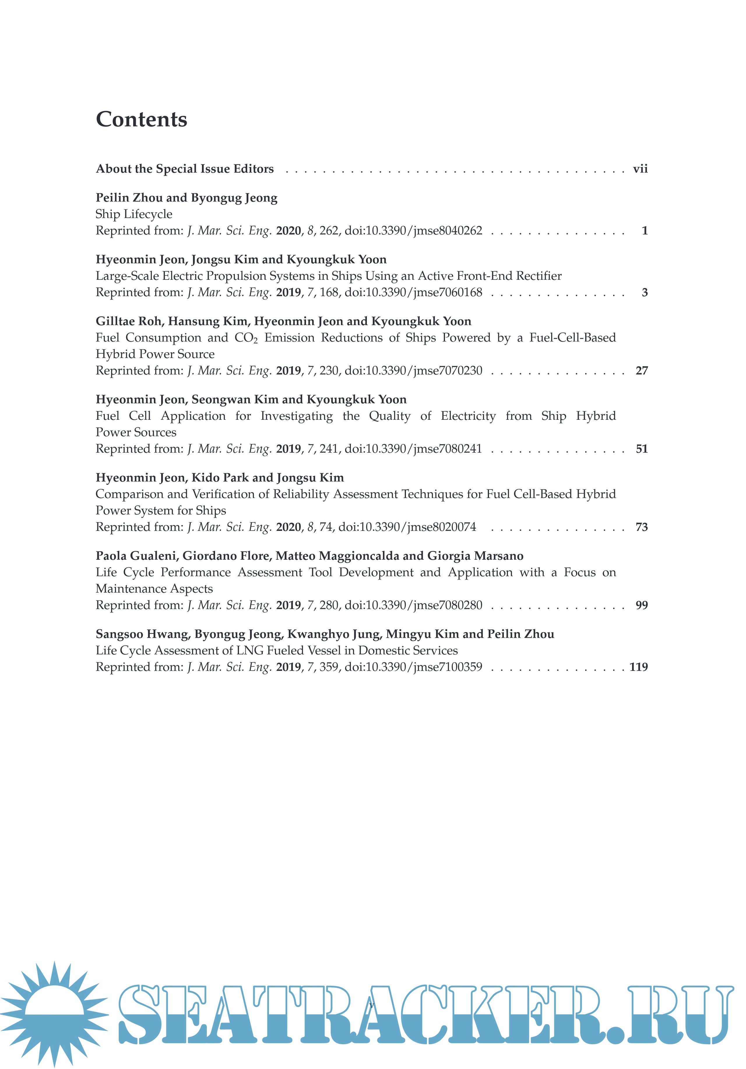 Description: In an effort to contribute to global efforts by addressing the marine pollution from various emission types, this Special Issue of Ship Lifecyle for Journal of Marine Science and Engineering was inspired to provide a comprehensive insight for naval architects, marine engineers, designers, shipyards, and ship-owners who strive to find optimal ways to survive in competitive markets by improving cycle time and the capacity to reduce design, production, and operation costs while pursuing zero emission. In this context, this Special Issue is devoted to providing insights into the latest research and technical developments on ship systems and operation with a life cycle point of view. The goal of this Special Issue is to bring together researchers from the whole marine and maritime community into a common forum to share cutting-edge research on cleaner shipping. It is strongly believed that such a joint effort will contribute to enhancing the sustainability of the marine and maritime activities. This Special Issue features six novel publications dedicated to this endeavor. First of all, as a proactive response to transitioning to cleaner marine fuel sources, numerous aspects of the excellence of fuel-cell based hybrid ships were demonstrated through four publications. In addition, two publications demonstrated the effectiveness of life cycle assessment (LCA) applicable to marine vessels.