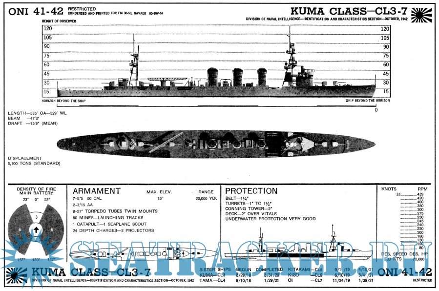 Во второй мировой войне активно участвовали 25 японских легких крейсеров, к концу войны из них уцелели только 3.