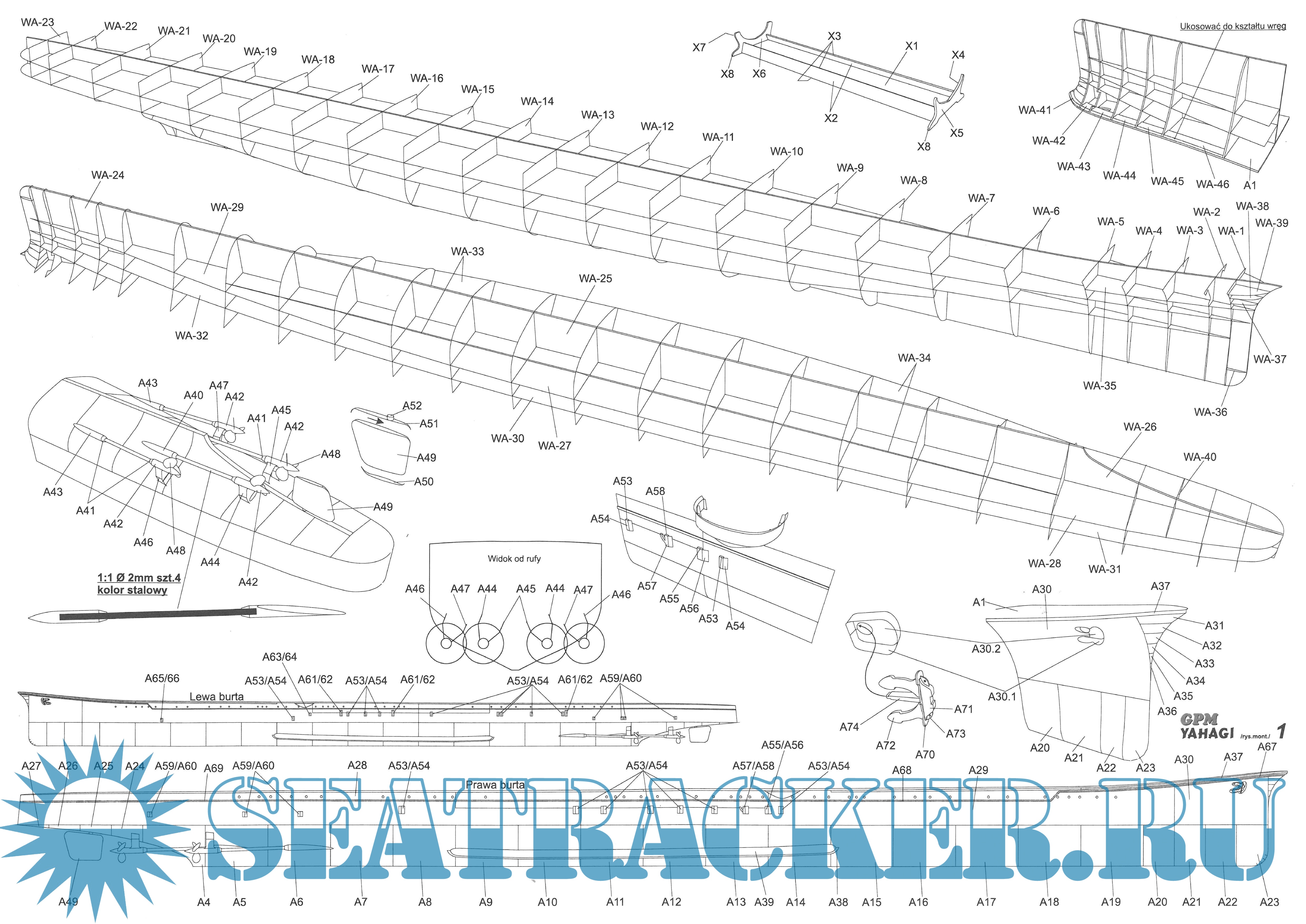 27 листов цветных выкроек и инструкций для изготовления бумажной модели японского лёгкого крейсера IJN Yahagi в масштабе 1:200Скриншоты