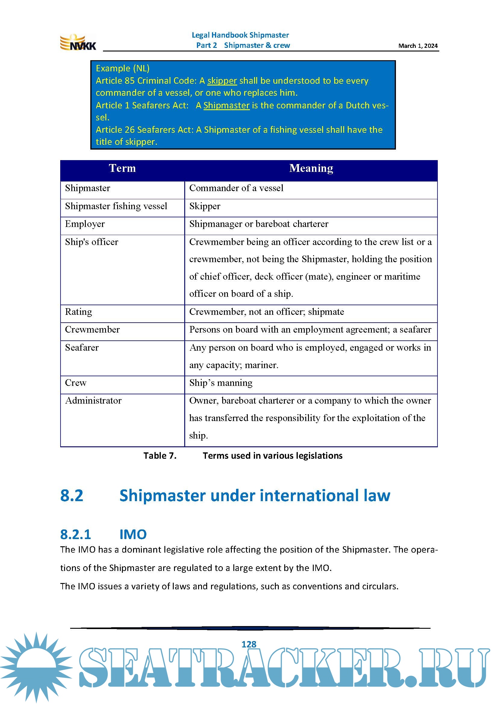 This Handbook has been written for the Shipmaster, but it can be used by all other interested parties, regardless of the ship’s flagstate or nationality, worldwide. The national maritime legislation of all countries is, more or less, similar because these legislations originate from a variety of international maritime agreements.