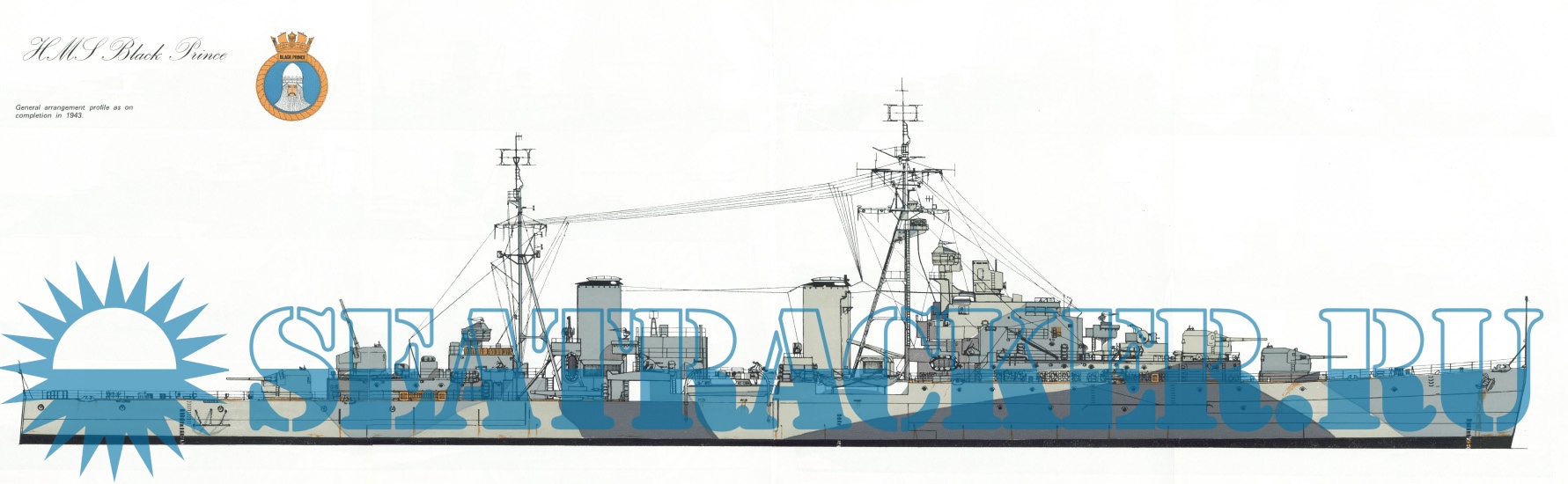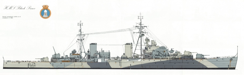 Description: The Dido class consisted of sixteen light cruisers built for the Royal Navy during World War II. The first group of three ships were commissioned in 1940; the second group of six ships and third group of two were commissioned between 1941 and 1942. A fourth group, also described as the Improved Dido or Bellona class (five ships) were commissioned between 1943 and 1944. Most members of the class were given names drawn from classical history and legend. The groups differed in armament, and for the Bellonas, in function. The Dido class were designed to replace the C-class and D-class cruisers as small fleet cruisers and flotilla leaders for the destroyer screen. As designed, they mounted five twin 5.25-inch high-angle gun turrets on the centreline providing dual-purpose anti-air and anti-surface capacity; the complex new turrets were unreliable when introduced, and somewhat unsatisfactory at a time when the UK faced a fight for survival. During the war, the original 1939-42 ships required extensive refit work to increase electrical generating capacity for additional wartime systems (notably radar and gun direction equipment) and in the final Bellona, HMS Diadem, fully-electric turrets. While some damage was experienced initially in extreme North Atlantic weather, changes to gun handling and drill partially mitigated the problems. The fitting of the three forward turrets in the double-superfiring A-B-C arrangement (although in Royal Navy classification, fifth turrets were called "Q", not "C") relied upon the heavy use of aluminium in the ships' superstructure, and the lack of aluminium after the evacuation of the British Army from France was one of the primary reasons for the first group only receiving four turrets, while the third group received four twin 4.5-inch mounts and no 5.25-inch guns at all. The Bellonas were designed from the start with four radar-directed 5.25-inch gun turrets with full Remote Power Control and an expanded light anti-aircraft battery, substantially increasing their efficiency as AA platforms.