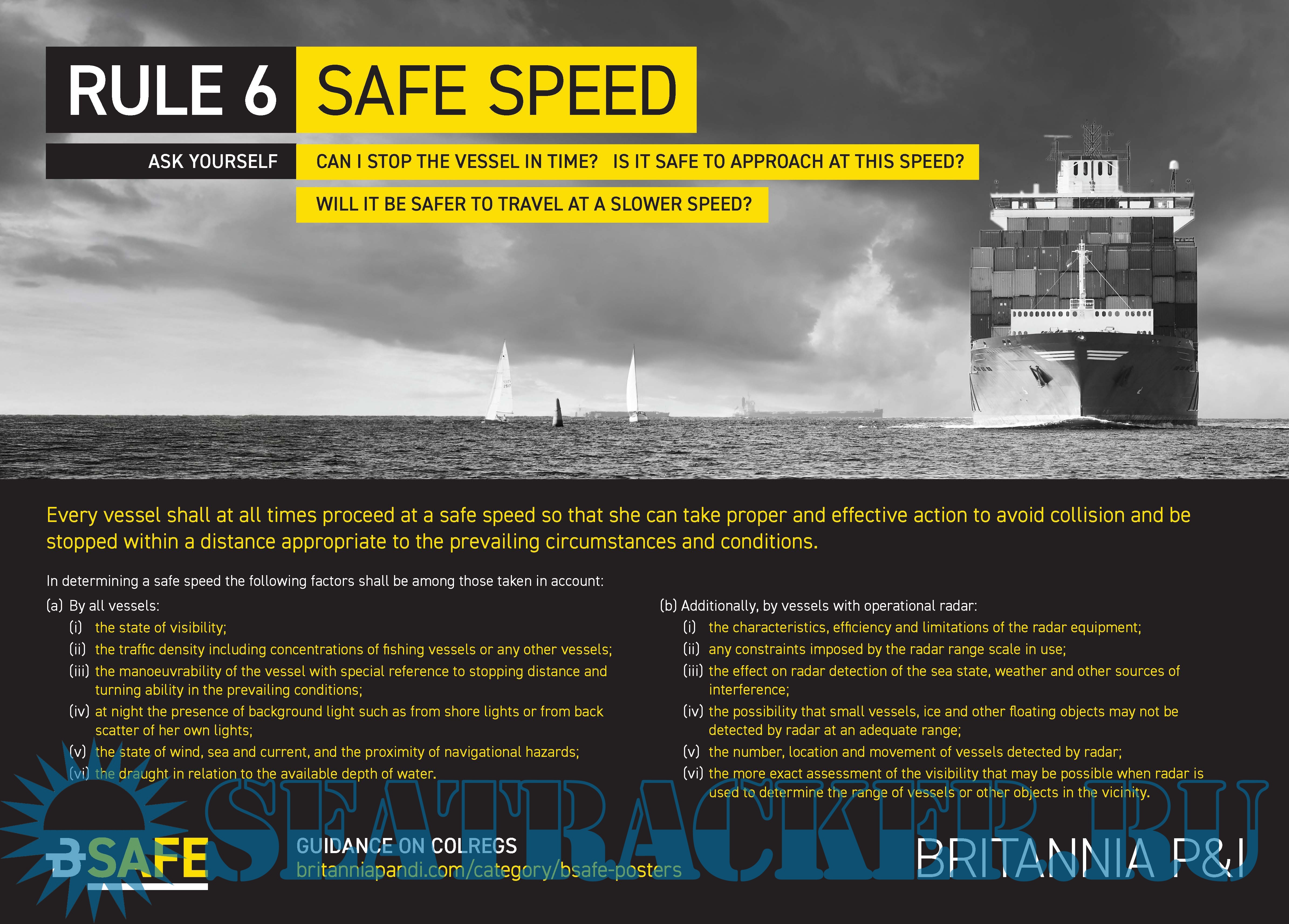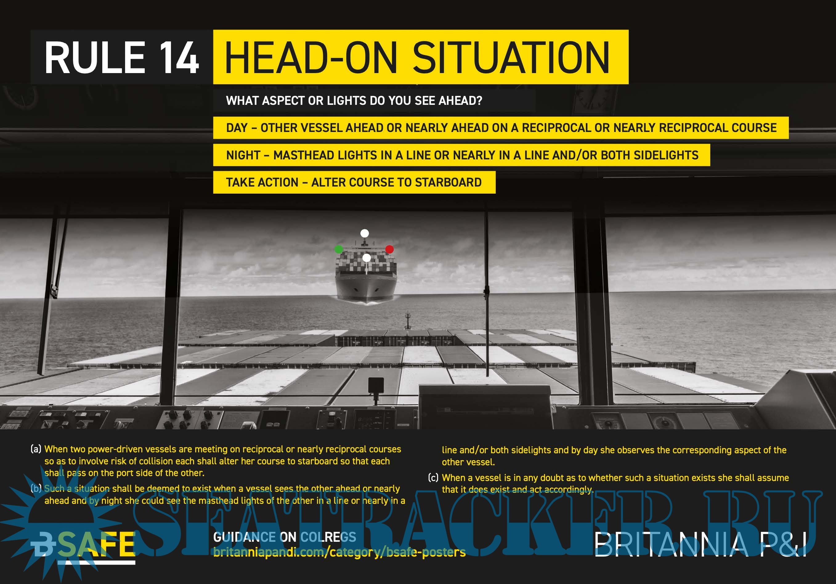 Description: The Britannia loss prevention team has created a series of COLREGs posters, highlighting the key elements of several rules in Part B of the COLREGs.