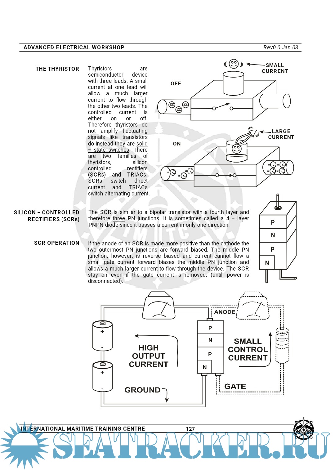 Year: 2004 Language: English Author: Maersk Genre: Training courses Publisher: International Maritime Training Centre - Wilhelmsen Format: PDF Quality: eBook Pages count: 205 Description: The workshop provides in-depth training on various electrical systems and troubleshooting techniques essential for marine engineers. It focuses on improving participants' confidence and competence in handling and analyzing electrical circuits, components, and systems. Course Objectives: - Understand the fundamental principles of electrical technology. - Identify and interpret electrical symbols, components, and their functions. - Learn to trace and troubleshoot complex electrical circuits logically. - Gain hands-on experience with advanced electrical systems and equipment. Theoretical: - Alternating current (A.C.) fundamentals and generator operations. - Power generation and parallel generator operations. - Maintenance of air circuit breakers and hazardous zones. - Motors, starters (including DOL, reduced voltage, and variable frequency drives), and soft starters. - Secondary battery maintenance and cathodic protection. Practical: - Use of diagnostic tools like multimeters and meggers. - Hands-on experience with contactors, relays, and timers. - Wiring and troubleshooting of various starters (DOL, star-delta, etc.). - Advanced troubleshooting on boiler control panels and other shipboard electrical systems. Duration: - 4 to 6 days, depending on the specific course structure. Target Audience: - Marine engineers, electrical officers, and related professionals seeking to improve their expertise in electrical systems.