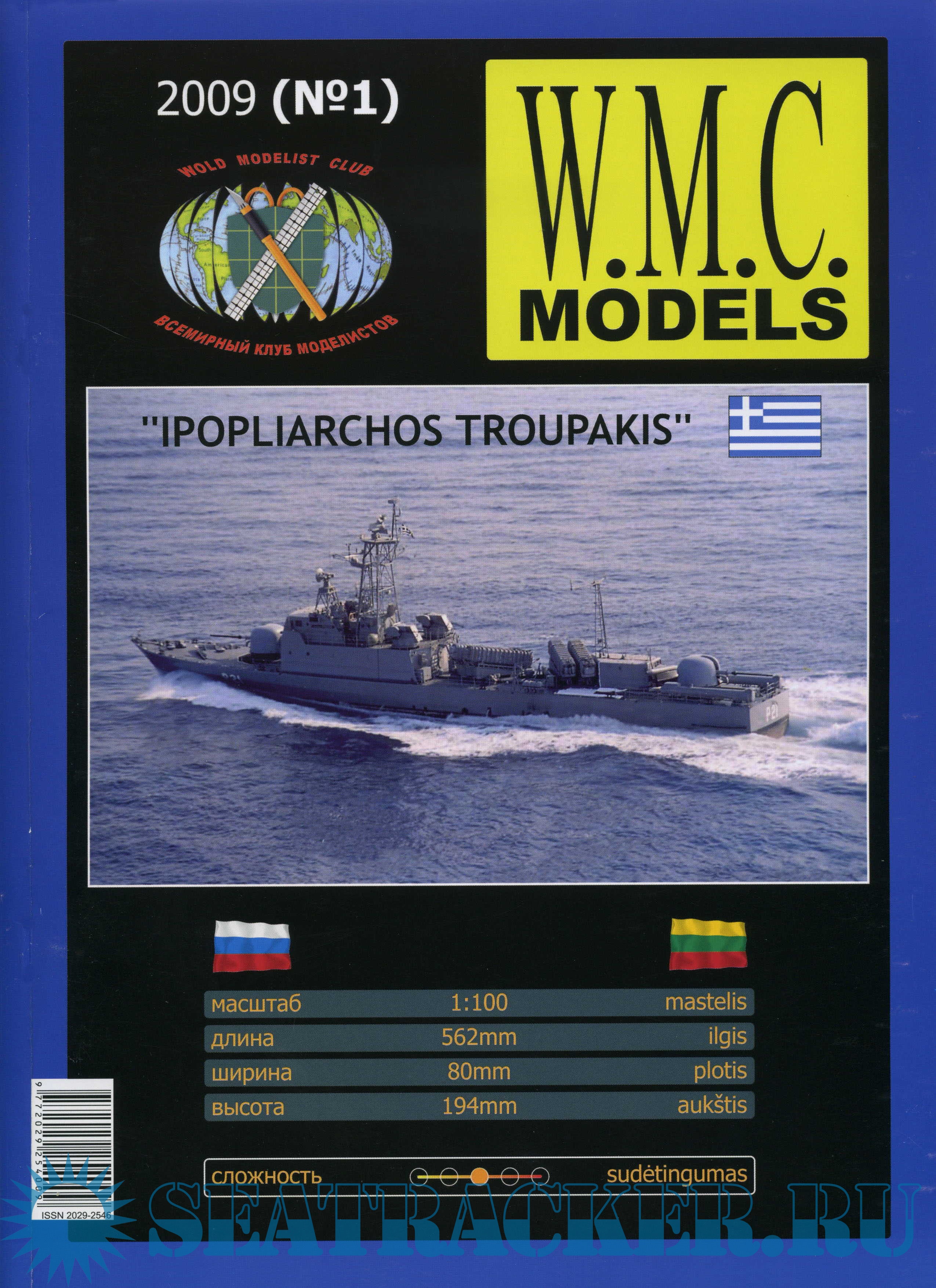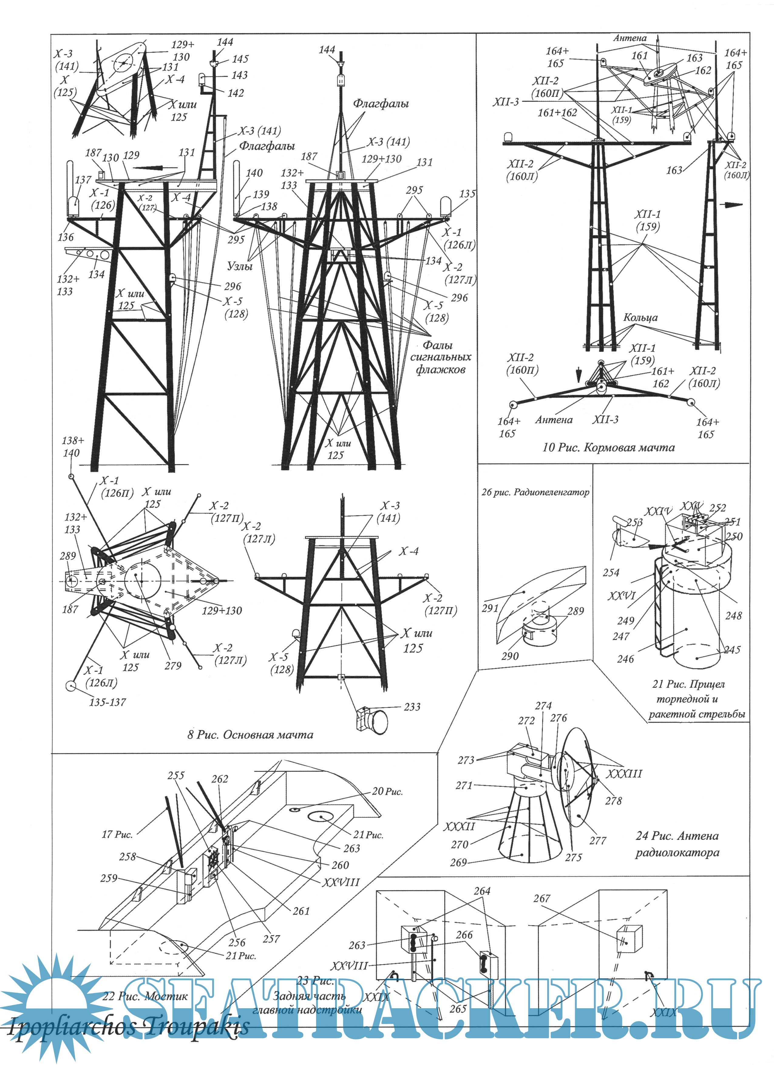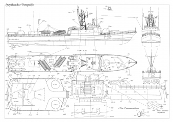 Описание: 21 лист цветных выкроек инструкций для изготовления бумажной модели большого ракетного корабля IPOPLIARHOS TROUPAKIS (Греция) в масштабе 1:100