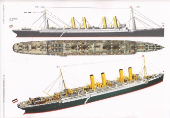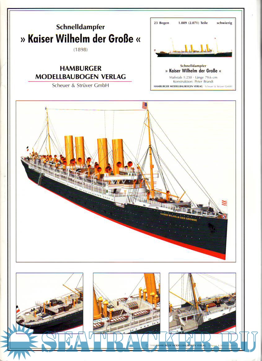 Описание: 41 лист цветных выкроек и инструкций для изготовления бумажной модели германского океанского лайнера Kaiser Wilhelm der Grosse, 1897г в масштабе 1:250