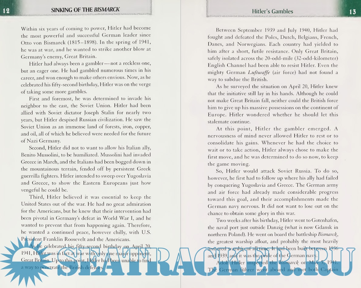Description: Recounts events leading up to and surrounding the May 1941 destruction of the British battle cruiser Hood by the German battleship Bismarck, soon followed by the sinking of the German ship by British forces