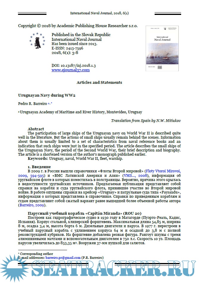 Год выпуска: 2018 Язык: Русский, Английский Автор: группа авторов Жанр: Периодическое издание (журнал) Формат: PDF Качество: Изначально компьютерное (eBook) Количество страниц: 90 Описание: Миссия журнала заключается в создании международной дискуссионной платформы в области военно-морской истории. В отличие от большинства авторитетных военно-морских исторических журналов, мы позиционируем себя в первую очередь как один из немногих научных журналов в этой области, что предполагает необходимые требования к структурированию работы, ее метаданным, библиографическому описанию, а также процедуре рецензирования.Журнал публикует материалы, статьи и краткие сообщения о результатах исследований в области военно-морской истории, на английском и русском языках. Выходные данные статьи на английском языке.