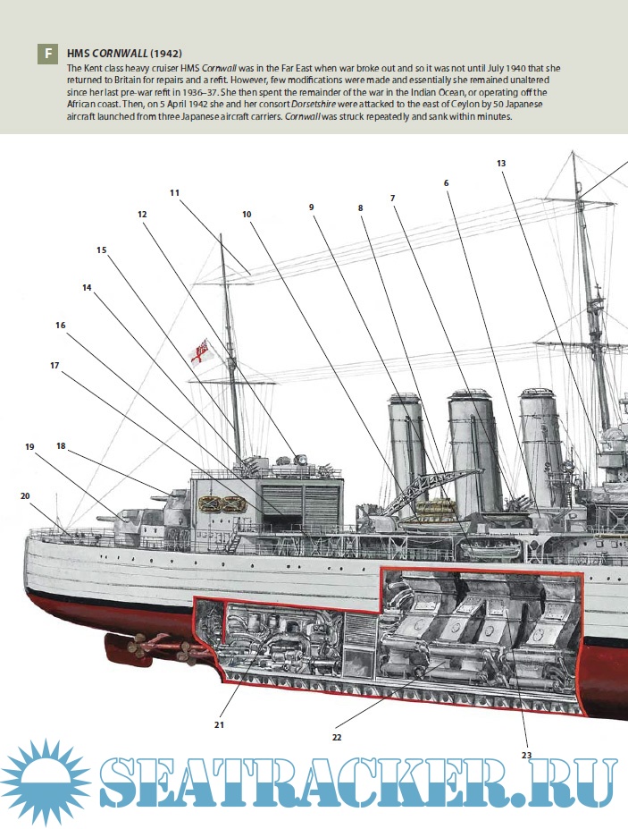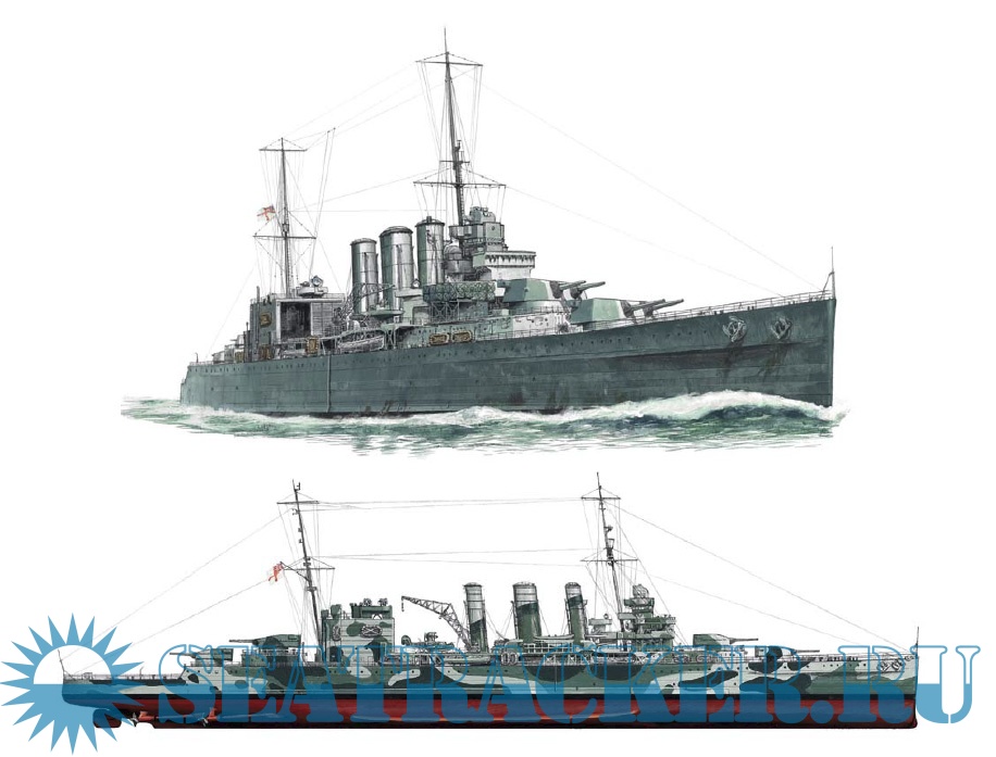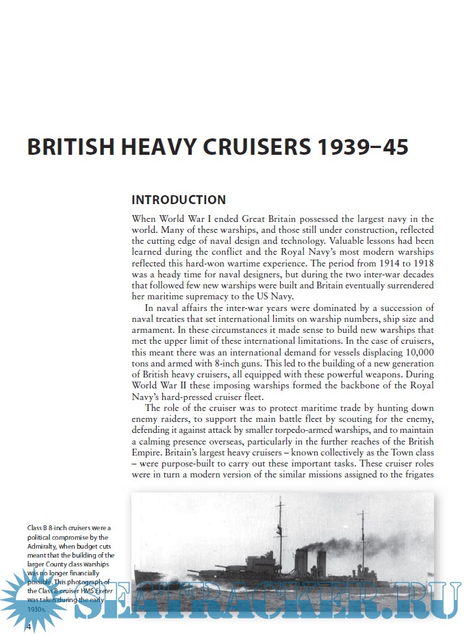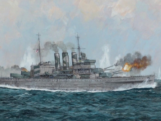 Description: The idea of a heavy cruiser emerged in the aftermath of World War I, and was closely linked to the limits set by the inter-war Washington Naval Treaty. The pre-World War I concept of armoured cruisers had been abandoned, but in their stead the Admiralty saw a place for powerful cruisers, able to patrol the sea lanes of the British Empire, and which were well-armed enough that they could destroy enemy commerce cruisers. The result was a group of British warships, known as the 'Washington Treaty Cruisers', that did everything the Admiralty wanted, but which conformed to the limits imposed by the treaty. These impressive cruisers were high-sided, spacious and stately – perfect peacetime ambassadors for British power. In war they also packed a considerable punch. During World War II the Royal Navy's thirteen heavy cruisers saw service in every theatre of the war, whether facing the Bismarck in the North Atlantic or enduring kamikaze attacks in the Pacific.
