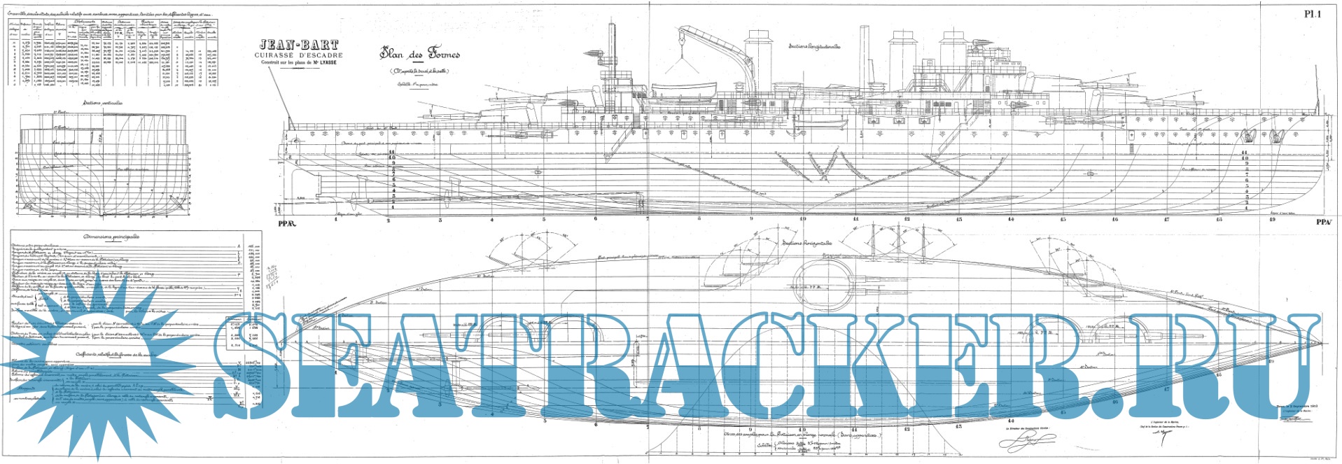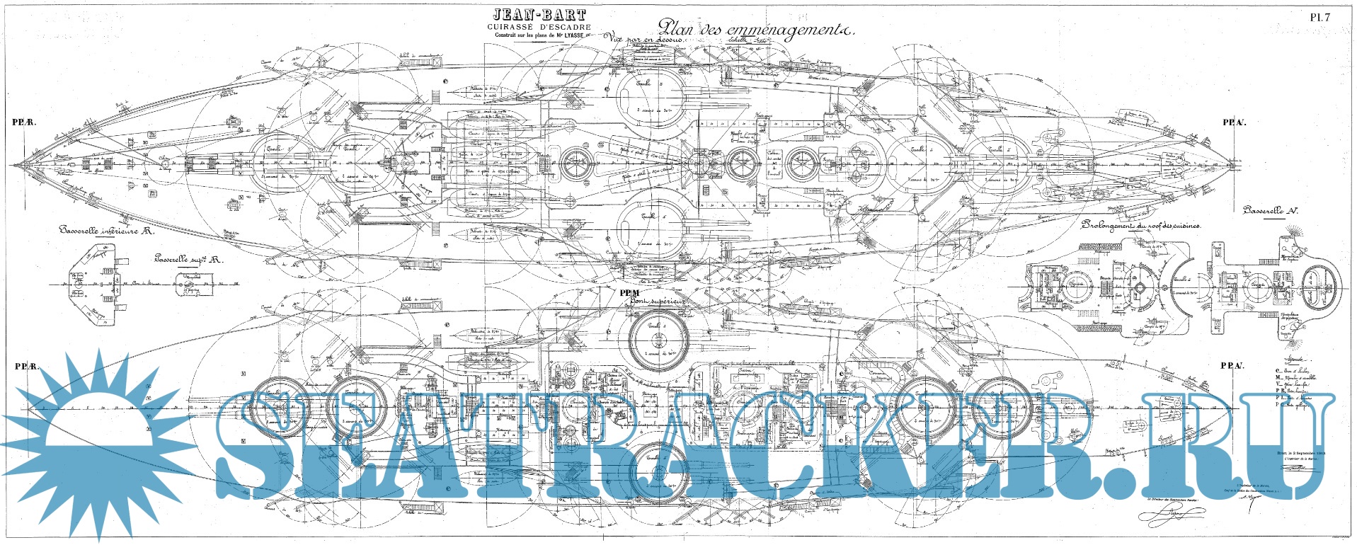 19 листов архивных чертежей французского линкора JEAN BART 1911 годСкриншоты