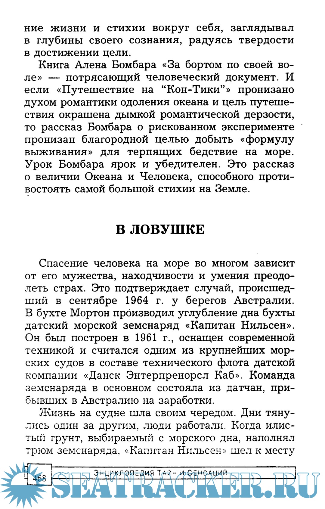 Год выпуска: 1998 Язык: Русский Автор: Трус Н.Н (авт.-сост.) Жанр: Энциклопедия Издательство: ЛИТЕРАТУРА Формат: PDF, EPUB Качество: Изначально компьютерное (eBook) Количество страниц: 641 Описание: В книге «Кораблекрушения» рассказано о наиболее драматических катастрофах и кораблекрушениях на море, которые навсегда останутся в памяти человечества. В литературе, посвященной этому вопросу, описаны катастрофы только надводных кораблей. Это, на наш взгляд, неправомерно. Подводные лодки всегда были наиболее опасным видом судов, плавающих как под водой, так и на воде. Надеемся, что книга будет интересна широкому кругу читателей — тем, кого привлекают морские приключения, и тем, кто серьезно интересуется историей кораблекрушений.