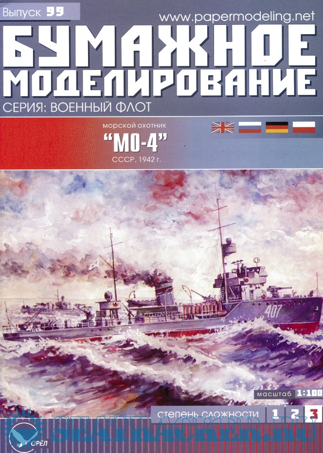 16 лисов цветных выкроек и инструкций для изготовления бумажной модели морского охотника МО-4 1942 год в масштабе 1:100Скриншоты