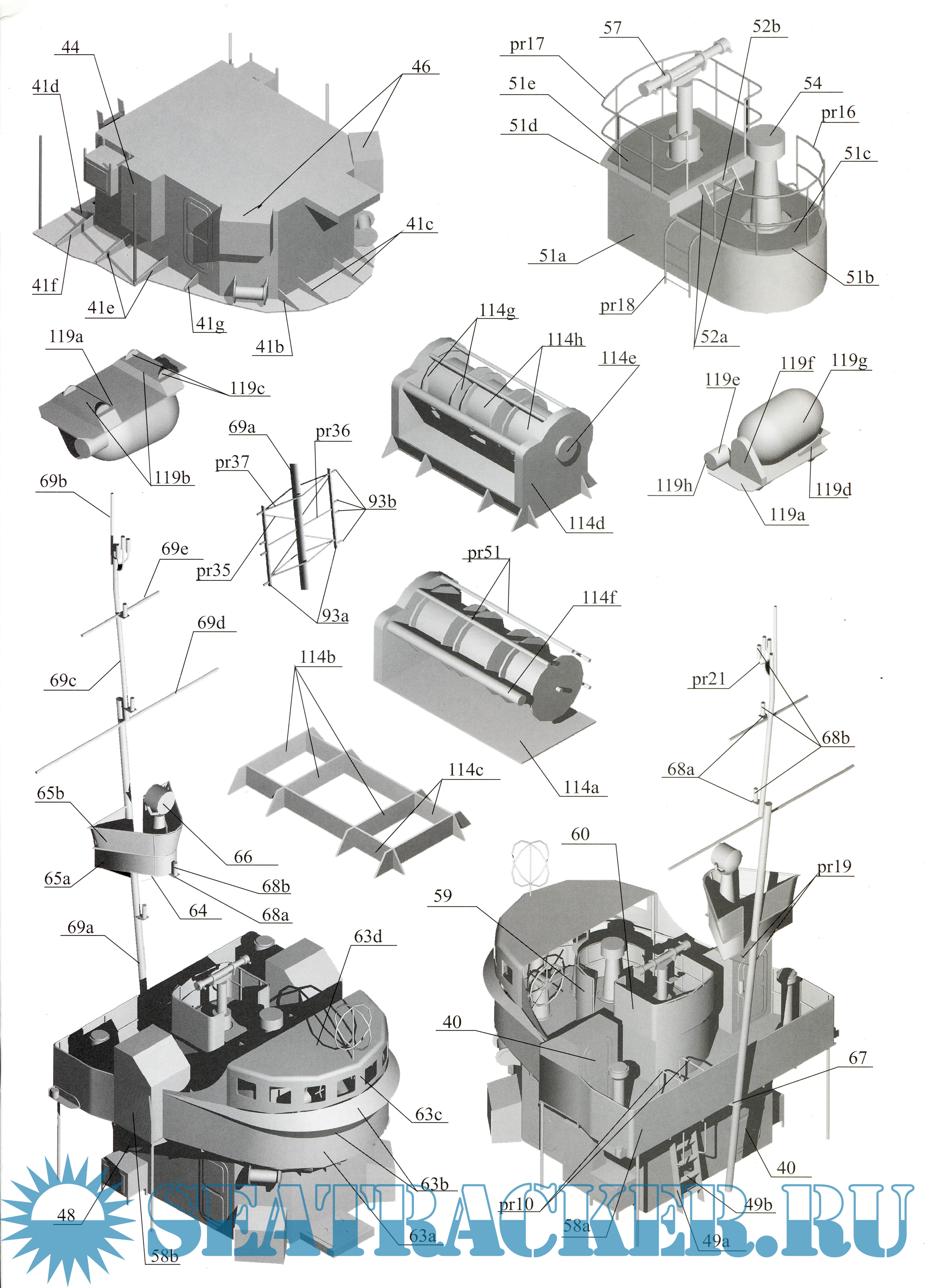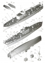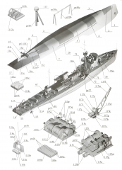 Описание: 16 лисов цветных выкроек и инструкций для изготовления бумажной модели морского охотника МО-4 1942 год в масштабе 1:100