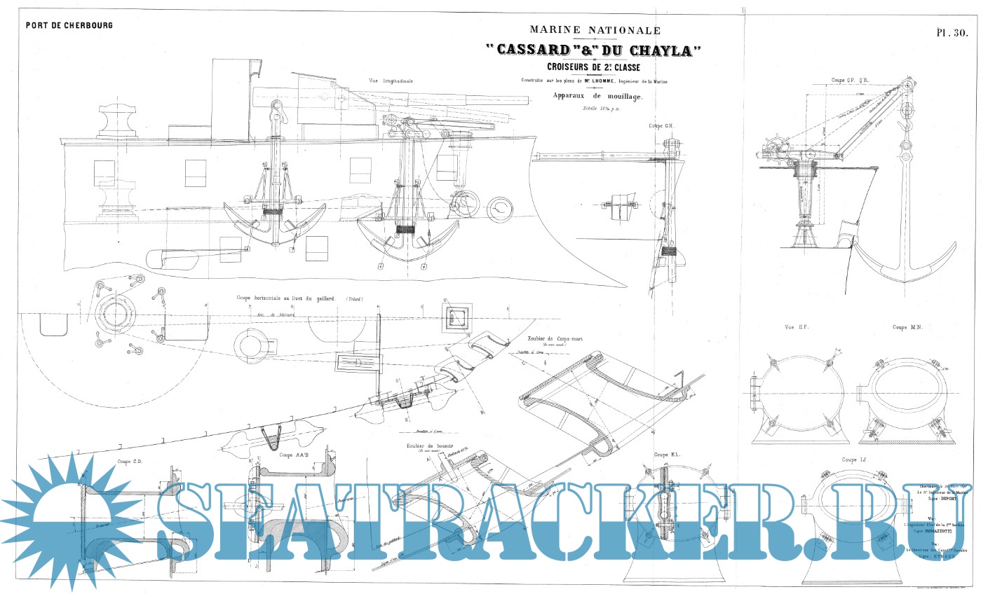 30 листов архивных чертежей французского крейсера 2-го ранга CASSARD 1886 годСкриншоты