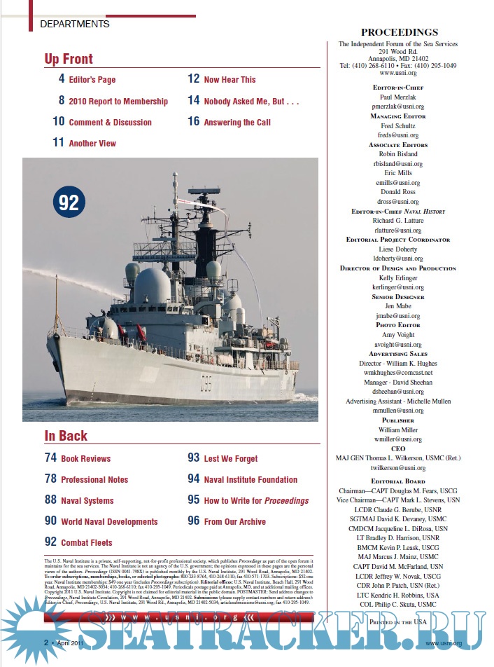 Year: 2011 Language: English Author: USCG Genre: Periodical publication Edition: 2011-04 Format: PDF Quality: eBook Pages count: 100 Description: Proceedings of the Marine Safety & Security Council, the Coast Guard Journal of Safety at Sea, is the voice of the Coast Guard’s Marine Safety and Security Council. It began publication in 1944 and, over the decades, has reached an increasing level of recognition among the larger maritime industry and Coast Guard personnel. Currently, over 30,000 copies of Proceedings are mailed out each issue.Proceedings’ audience includes a large segment of the private maritime industry population, including retired officers, fishing vessel captains, river pilots, ocean scientists, marine engineers, tug/tow boat operators, shipping executives, insurance operators, and maritime lawyers. Other subscribers include U.S. Coast Guard and U.S. Navy personnel, mariners, reservists, Departments of Homeland Security and Transportation staff, and allied foreign national readers.The U.S. Coast Guard publishes Proceedings three times a year. Each edition of Proceedings-typically 80 to 100 pages-features a specific theme and is championed by a Coast Guard office, assigned based on the command’s expertise in that area. Recent themes have included: The 21st Century Maritime Workforce; Recreational Boating Safety; Waterways: America's Economic Engine; Safety Management Systems; and Improving Maritime Safety.