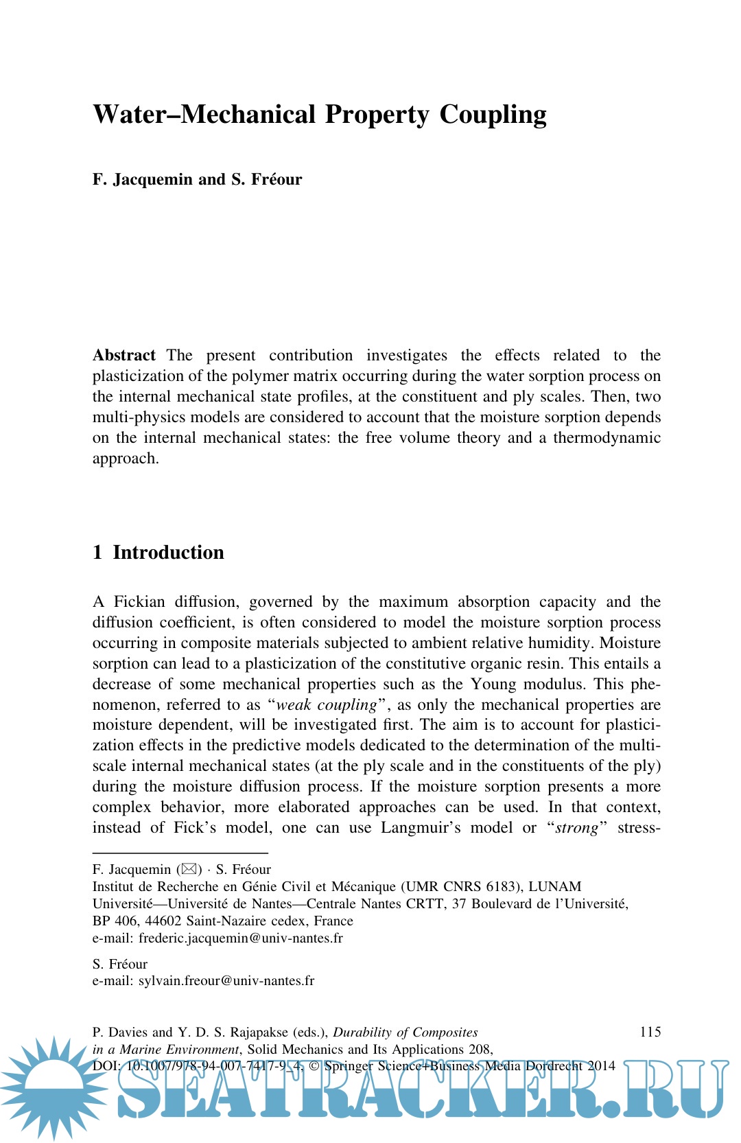 This is a great book, but there is a free version of: "Durability Of Composites In A Marine Environment 2" published 2018 and much more updated version. Link to free 2018 edition is: *************************************************************************