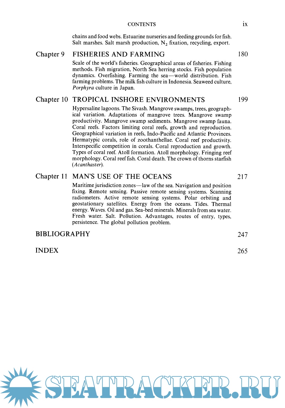 Description: This new edition is expanded and reorganized, and includes new figures and tables. There is new material on the use of satellites in remote sensing and position fixing, hydrothermal vents at floor spreading centers, renewable resources in the sea, seabed minerals, oil and gas, pollution, and the laws of the sea. Examples are drawn from a wide range of seas: the coral reefs and mangrove swamps of the Indo-Pacific, the Great Barrier Reef on the northeast coast of Australia, fish farming in the Far East, and mining manganese in the Pacific.