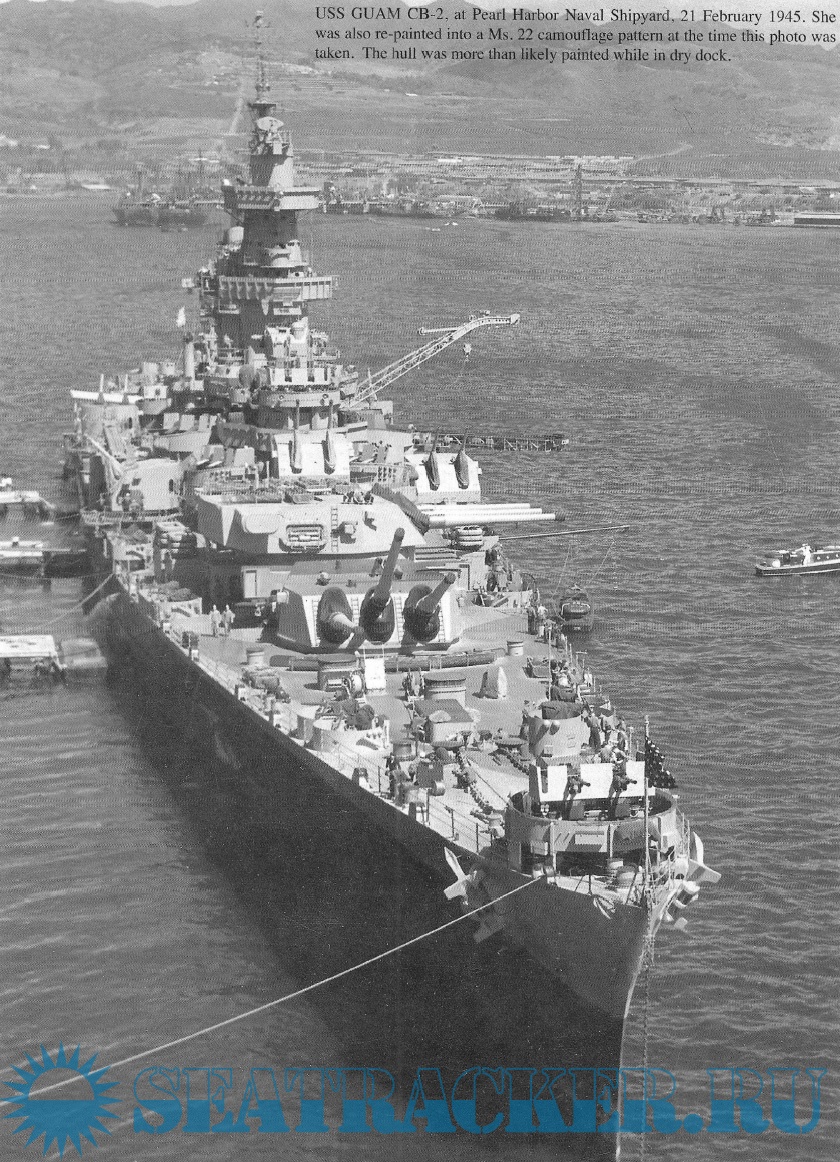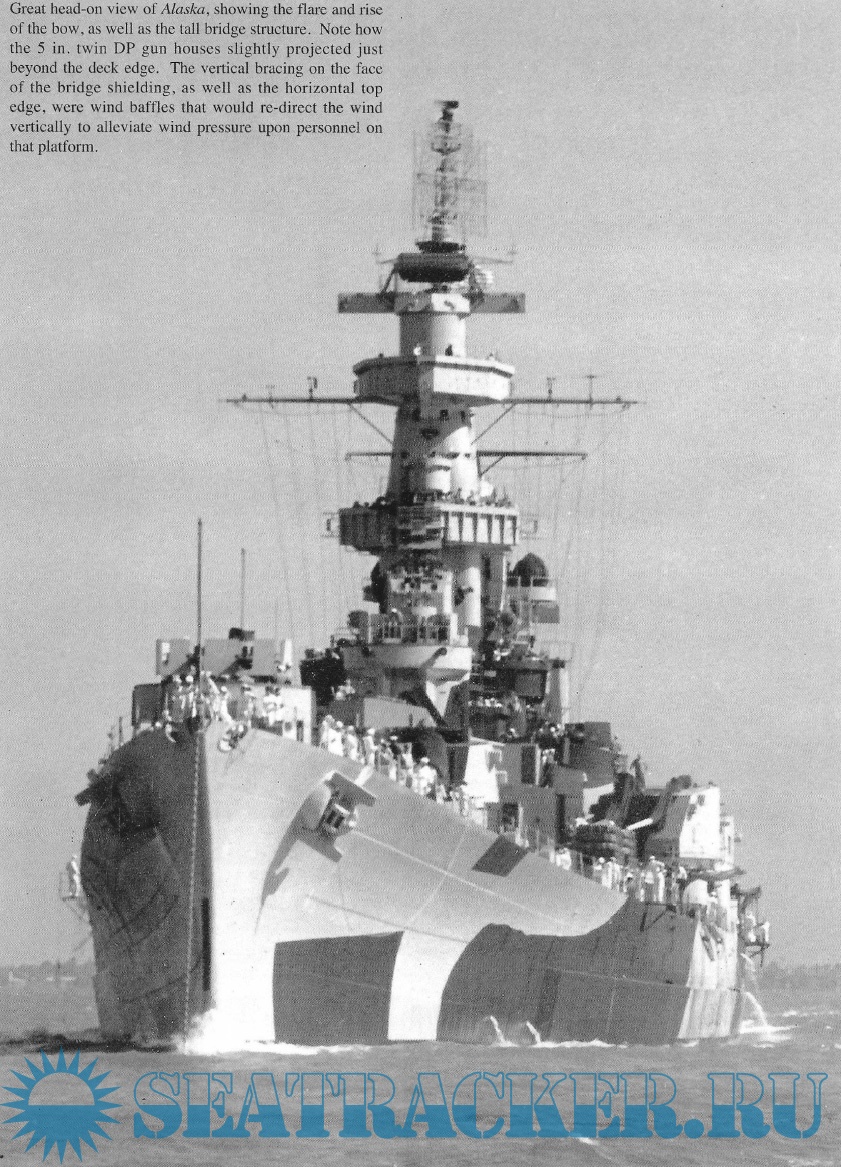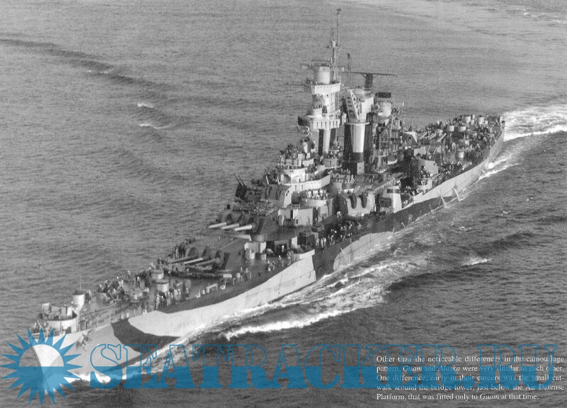 Description: The Alaska-class were six large cruisers ordered before World War II for the United States Navy (USN), of which only two were completed and saw service late in the war. The USN designation for the ships of this class was 'large cruiser' (CB), a designation unique to the Alaska-class, and the majority of leading reference works consider them as such. However, various other works have alternately described these ships as battlecruisers despite the USN having never classified them as such, and having actively discouraged the use of the term in describing the class. The Alaskas were all named after territories or insular areas of the United States, signifying their intermediate status between larger battleships (which were mostly named after states) and smaller heavy and light cruisers (which were named after cities)