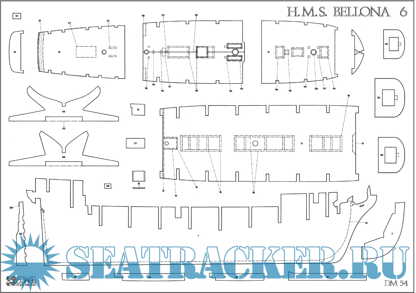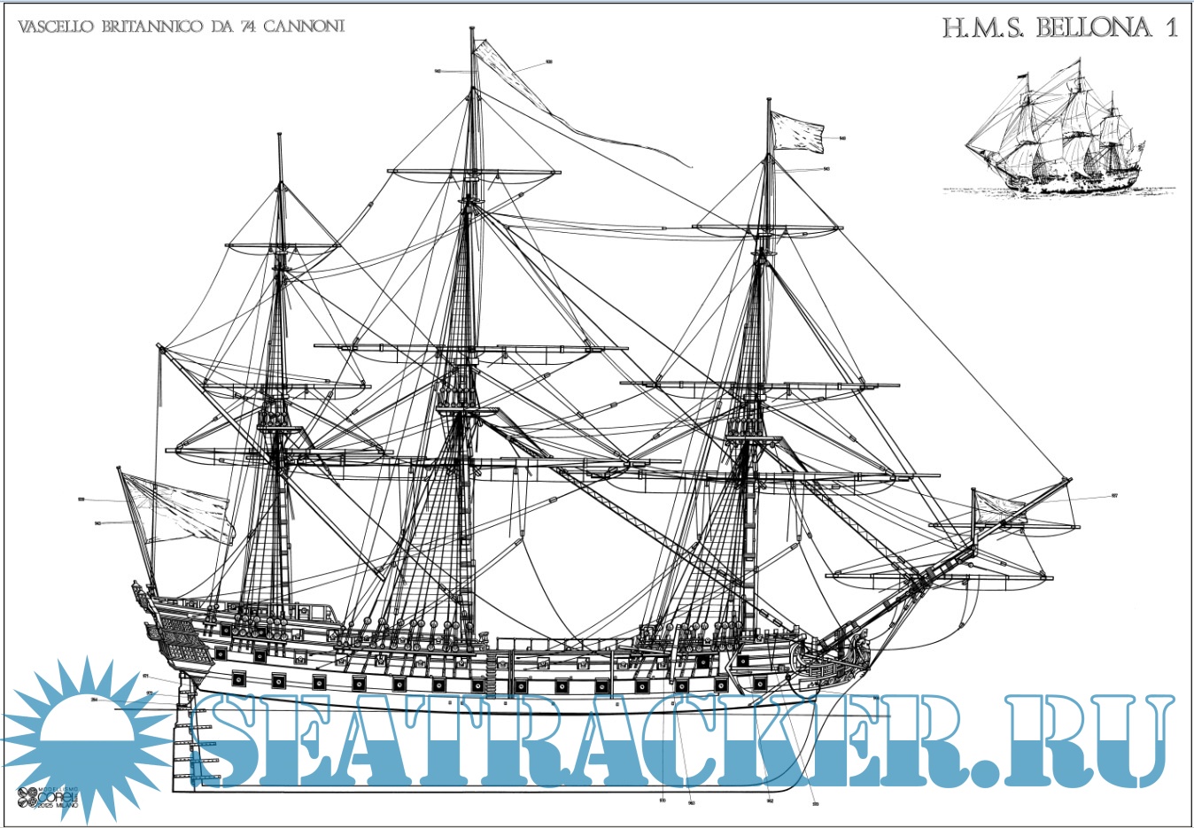 Описание: Чертежи и руководство по изготовлению модели парусного корабля HMS Bellona - Corel