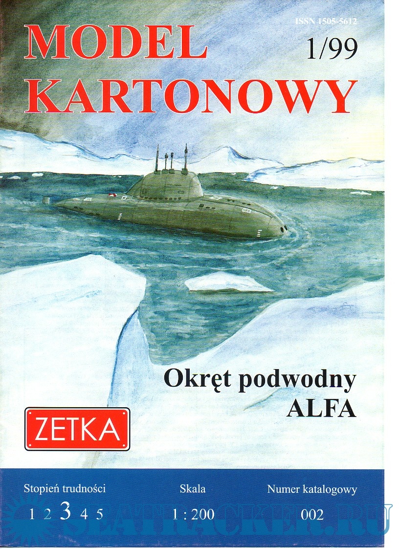 Описание: 8 листов цветных выкроек и инструкций для изготовления бумажной модели атомной подводной лодки проекта 705 Лира Alfa (СССР) в масштабе 1:200