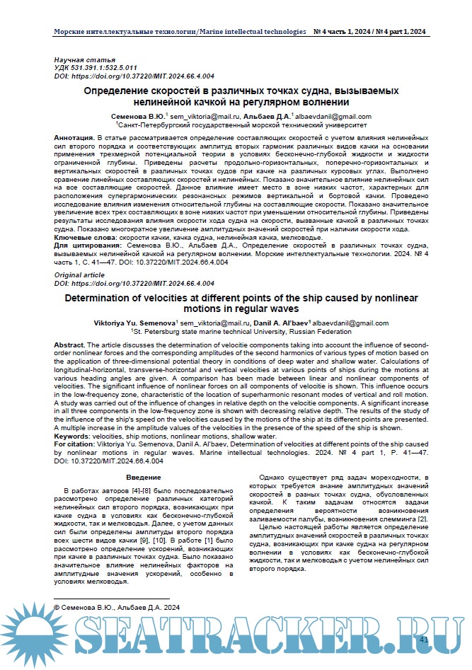 Морские интеллектуальные технологии 2024 № 4 часть 1