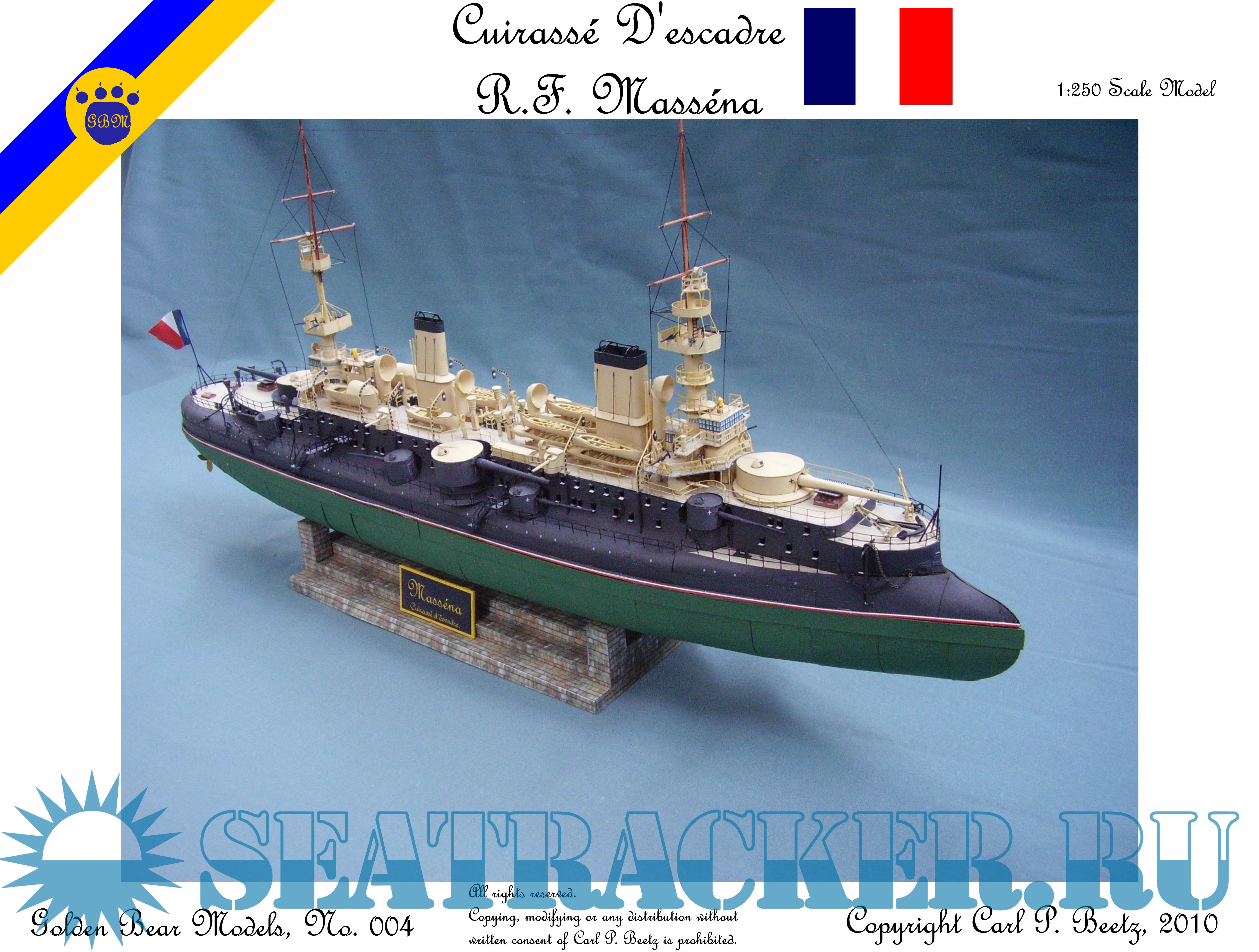 Год выпуска: 2010 Язык: Английский Автор: нет данных Жанр: Кто действительно занимается судо- (и не только) моделизмом :) Издание: GreMir Models 071 Формат: JPEG Качество: Изначально компьютерное (eBook) Количество страниц: 48 Описание: 48 листов цветных выкроек и инструкций для изготовления бумажной модели французского броненосца RF Massena 995 год в масштабе 1:250