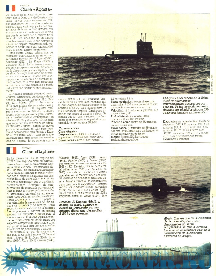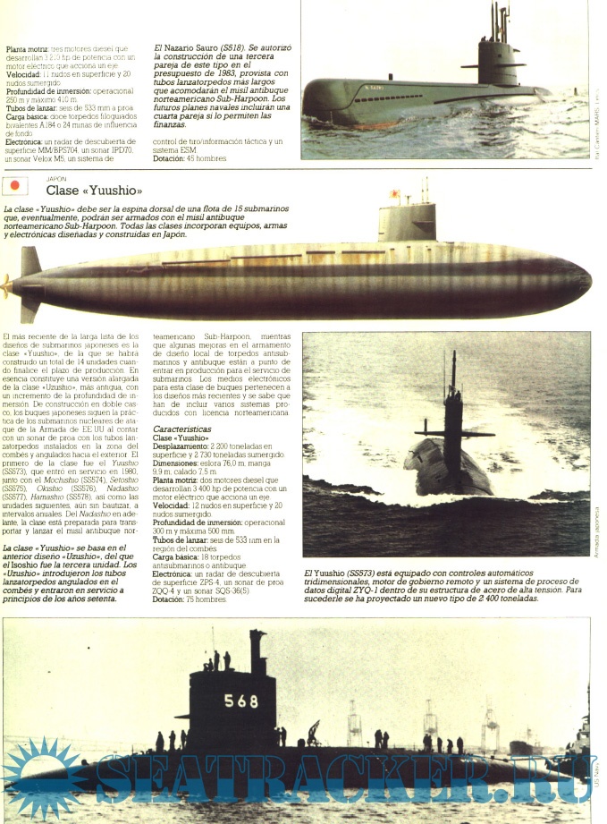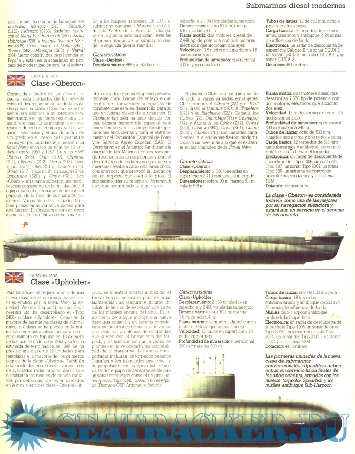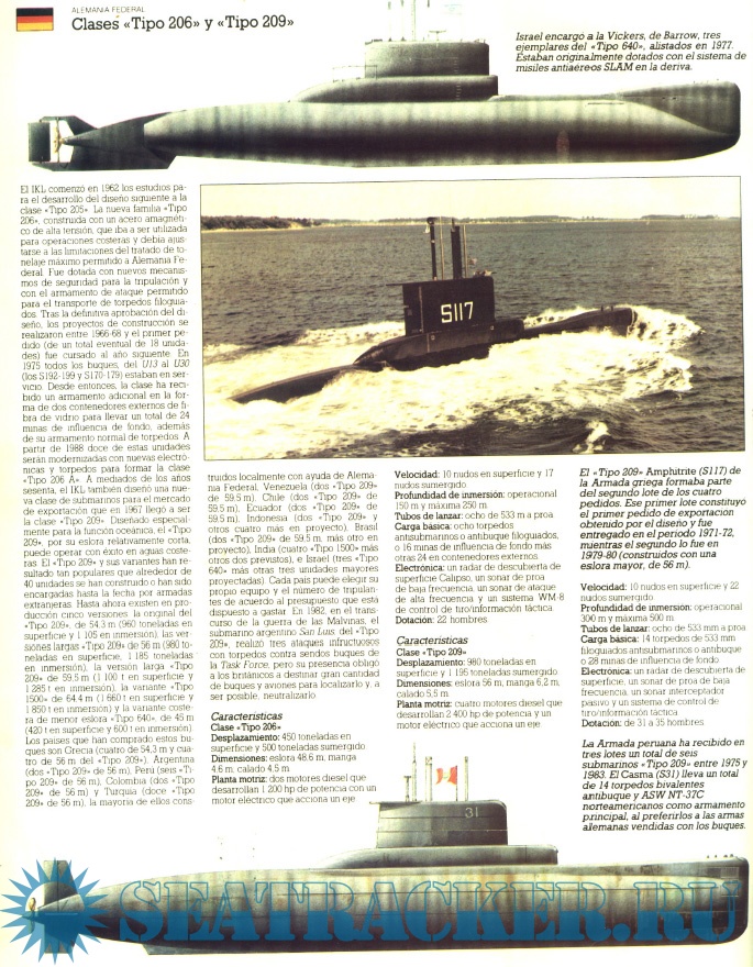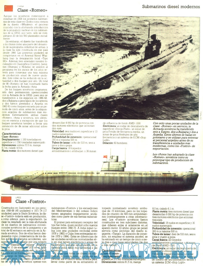 Year: 1985 Language: Spanish Author: Planeta-Agostini Genre: Encyclopedia, Historical Publisher: Planeta-Agostini Format: PDF Quality: Scanned pages Pages count: 21 Description: Enciclopedia de las Armas del Siglo XX. Esta obra de Planeta-Agostini consta de 120 fasciculos encuadernables en 10 volúmenes. En esta numero: Submarinos diesel modernos. A mediados de los años cincuenta, la llegada de la propulsión nuclear pareció anunciar la desaparición de los viejos modelos de submarinos diesel, pero en la practica este tipo de buques retiene todavía una vigencia plena.