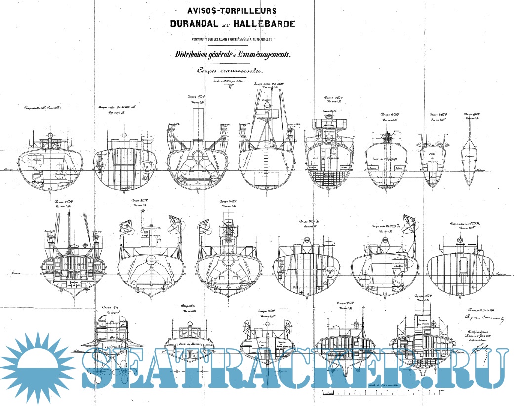 Архивные чертежи французского миноносца DURANDAL 1899 год - нет данных [1899, TIFF]