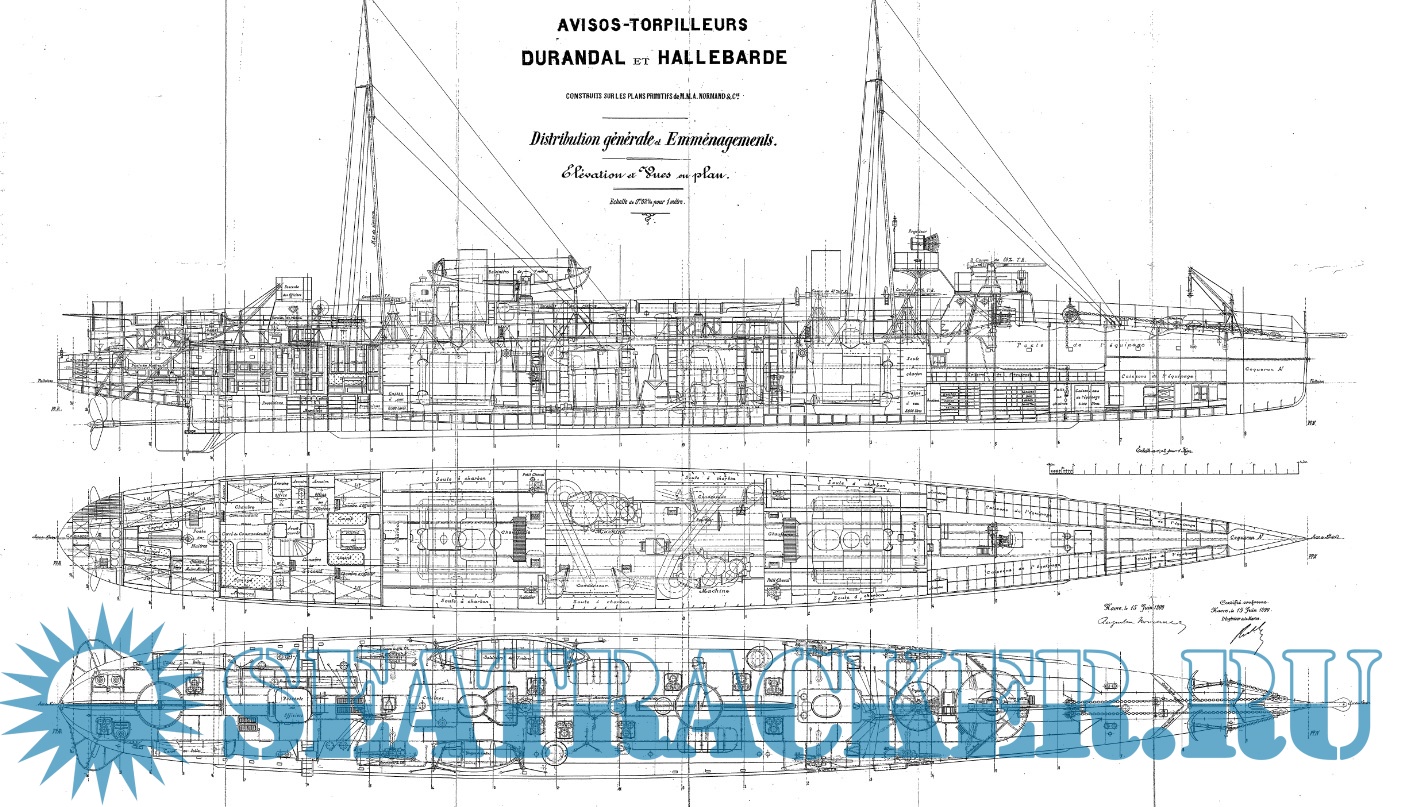Архивные чертежи французского миноносца HALLEBARDE 1899 год