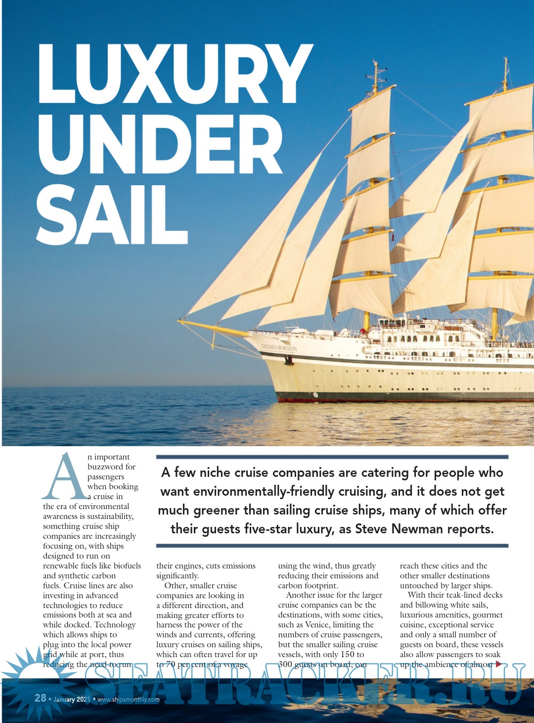 Description: Ships Monthly is the world's leading international shipping magazine. Ships Monthly provides news and features for ship enthusiasts and maritime professionals, including reports on the ferry, cruise, new building and cargo ship scene as well as navies across the world.The latest issue of Ships Monthly is out now, and is packed with all the usual news and features, including outstanding articles and features.