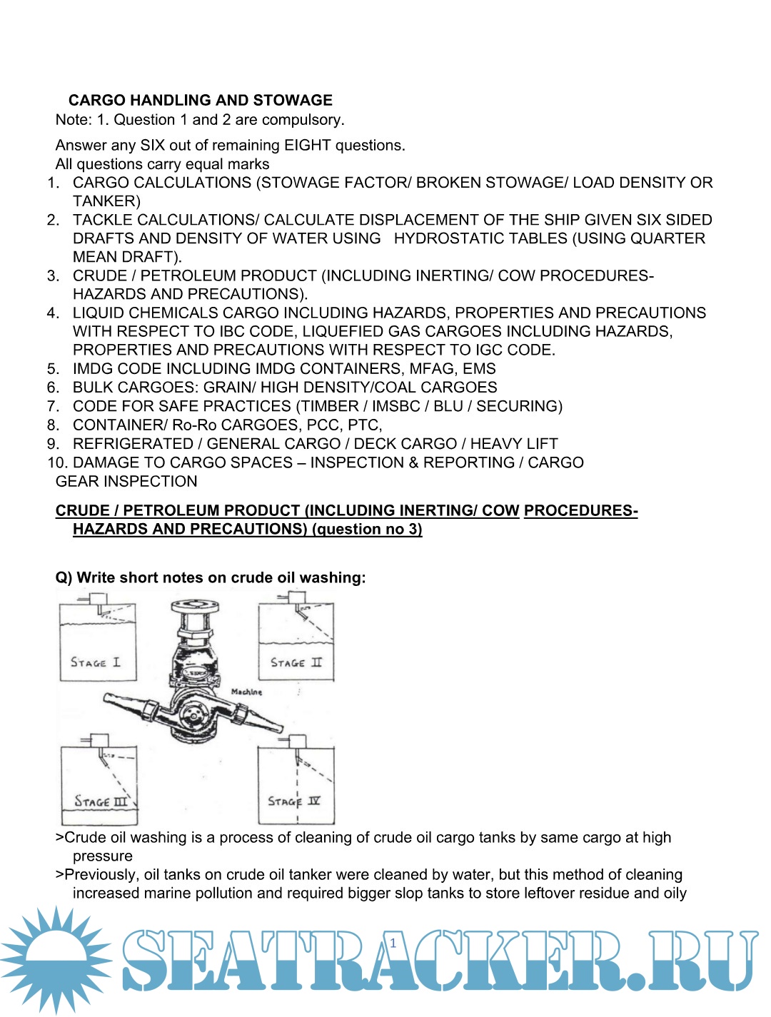 Year: 1997 Language: English Author: Capt.Bhrigunandan Mahato Genre: Manual Publisher: MArigas Edition: 1 Format: PDF Quality: Scanned pages Pages count: 148 Description: 1. Loading and Unloading Cargo: Loading refers to the process of placing goods onto a transportation vehicle or ship, often using cranes, forklifts, or other mechanical equipment. Unloading is the opposite, where cargo is removed from the transportation mode and transferred to storage, warehouses, or other destinations. 2. Stowing Cargo: Proper stowing involves arranging cargo in a way that maximizes space, ensures stability, and prevents damage during transport. This requires knowledge of weight distribution, cargo types, and safety regulations. On ships, for example, this includes decisions about where to place different types of cargo (such as hazardous materials or perishables) to avoid risks and optimize space. 3. Securing Cargo: Securing cargo ensures it does not shift, move, or fall during transportation. This is vital for preventing accidents and damage to both the goods and the vehicle or vessel. Techniques include using ropes, chains, straps, nets, and containers, along with specific methods for different cargo types (e.g., breakbulk, containers, or bulk cargo). 4. Cargo Handling Equipment: Cranes, forklifts, and winches are commonly used to lift, move, and position cargo. The choice of equipment depends on the type of cargo, its weight, and its size. Conveyors, trucks, and pallet jacks may also be used for moving goods within warehouses or between different transportation modes. 5. Safety Procedures: Cargo work is inherently dangerous due to the weight and size of goods being handled, as well as the potential for hazardous materials or unsafe loading practices. Safety measures include the use of personal protective equipment (PPE), safe loading and unloading practices, and ensuring compliance with regulations like the International Maritime Dangerous Goods (IMDG) code for hazardous cargo. 6. Documentation and Inspection: Before cargo is shipped, accurate documentation is required, such as bills of lading, manifestos, and customs declarations. This ensures compliance with international shipping laws and regulations. Cargo may also need to be inspected for damage, compliance with safety standards, and suitability for transport. 7. Types of Cargo: Containerized Cargo: Goods transported in large containers, making it easier to load and unload. Bulk Cargo: Loose, unpackaged cargo such as grains, coal, or liquids, typically transported in bulk carriers. Breakbulk Cargo: Goods that are too large or heavy to fit into containers, like machinery, steel coils, or vehicles. Project Cargo: Large, complex shipments like industrial equipment or oversized machinery. Perishable Cargo: Goods that require special handling, like food and pharmaceuticals, often transported in refrigerated containers. 8. Regulatory Compliance: Cargo work must comply with various national and international regulations, such as safety standards, customs regulations, and environmental laws. For example, ships must follow the International Maritime Organization (IMO) guidelines, while air cargo might follow rules set by the International Civil Aviation Organization (ICAO). 9. Training and Certification: Cargo handlers typically require training to understand the proper techniques, safety measures, and regulatory requirements involved in cargo work. Training might include certifications in cargo handling, dangerous goods handling, and maritime safety. Key Skills in Cargo Work: Knowledge of different types of cargo and how to handle them Familiarity with the necessary tools and equipment Attention to detail for ensuring cargo is properly secured and not damaged Physical strength and stamina, especially for manual handling Problem-solving skills for stowing and arranging cargo efficiently Strong understanding of safety protocols