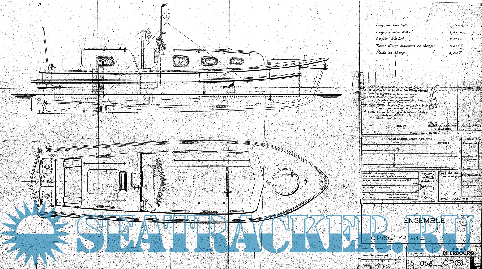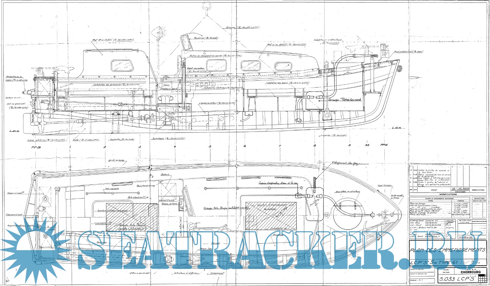 Архивные чертежи французского катера LCPS type 61 1958 год