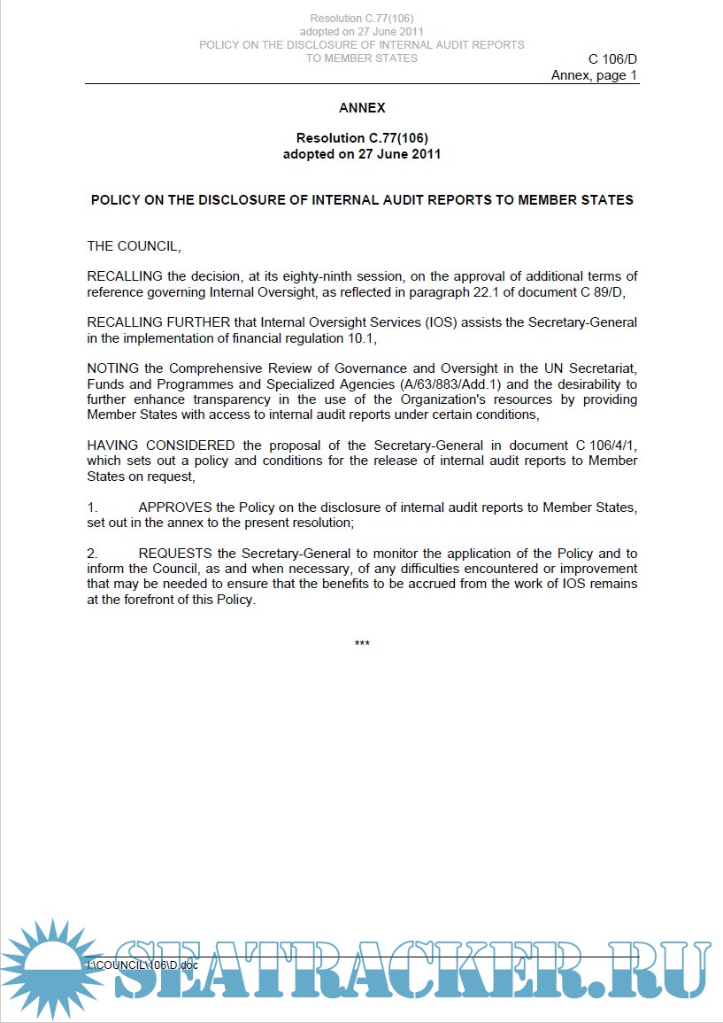 Additional info: IMO Resolutions are adopted by the key organs and committees of the Organization. Resolutions are first issued within the official IMO meeting reports and documents relating to the relevant committee or organ.