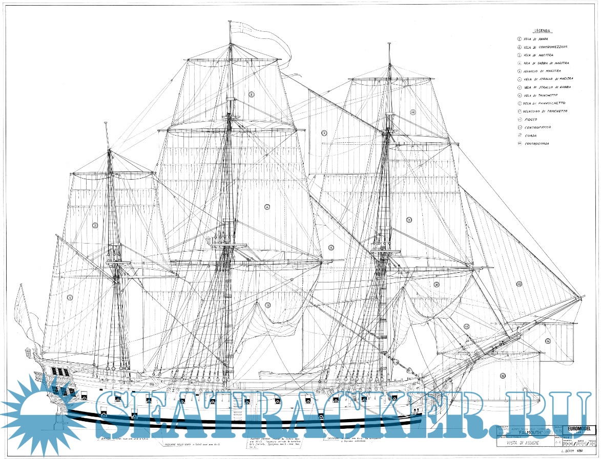 Чертежи и руководство по изготовлению модели парусного корабля H.M.S. Falmouth 1752 год (Euromodel)